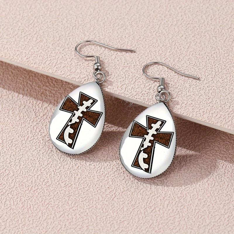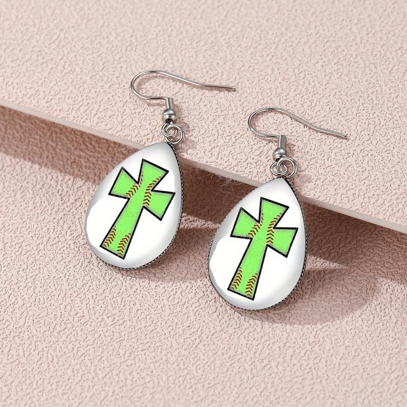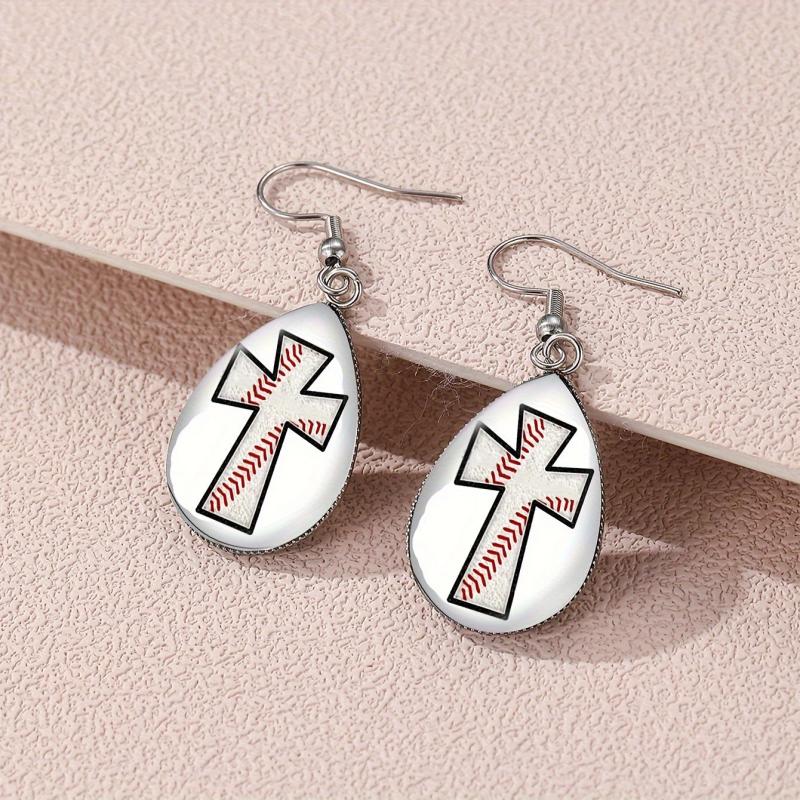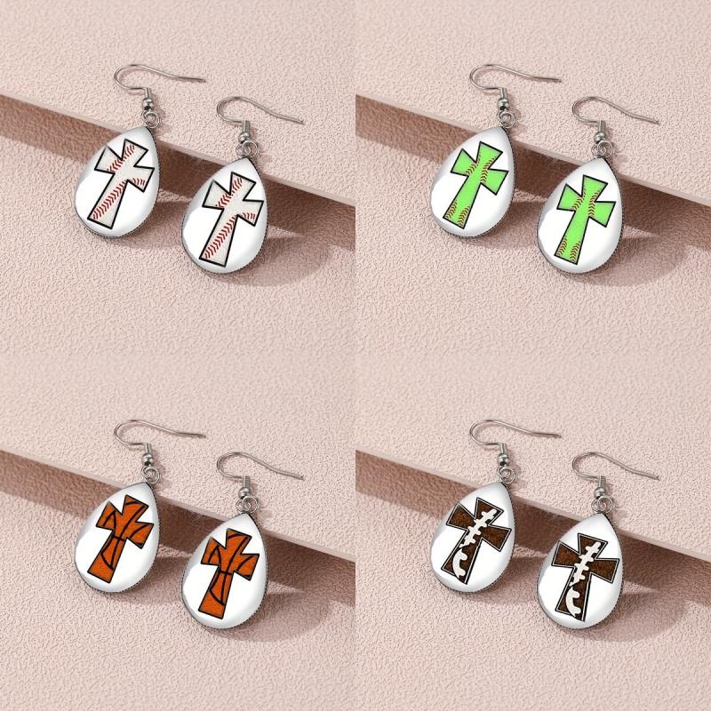 These elegant drop earrings feature a cross and ball design with glass accents. They are made of hypoallergenic alloy, making them perfect for individuals with sensitive skin. Ideal gift for religious enthusiasts.