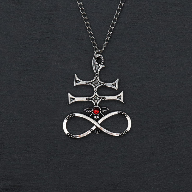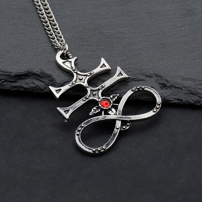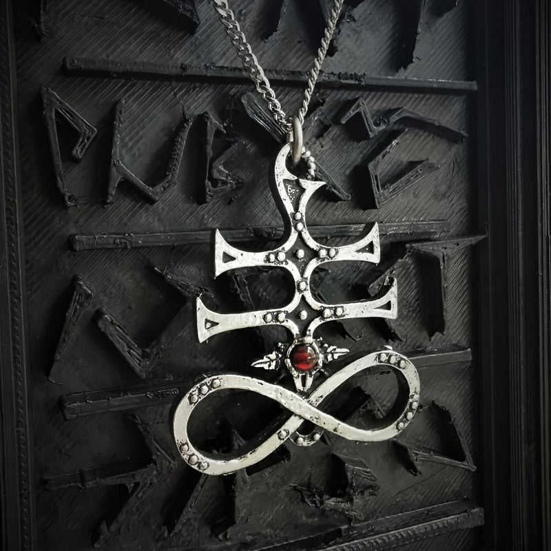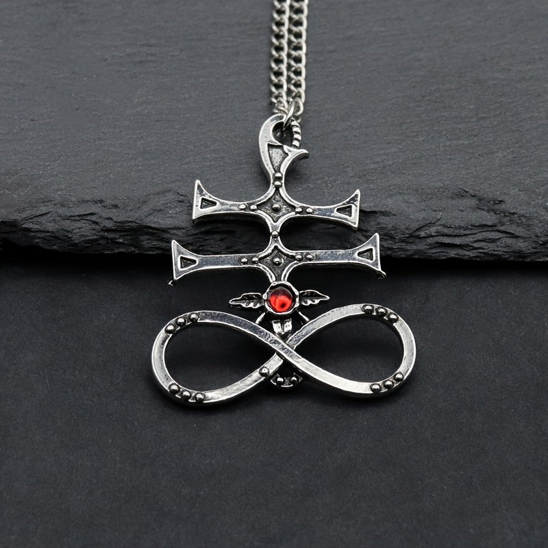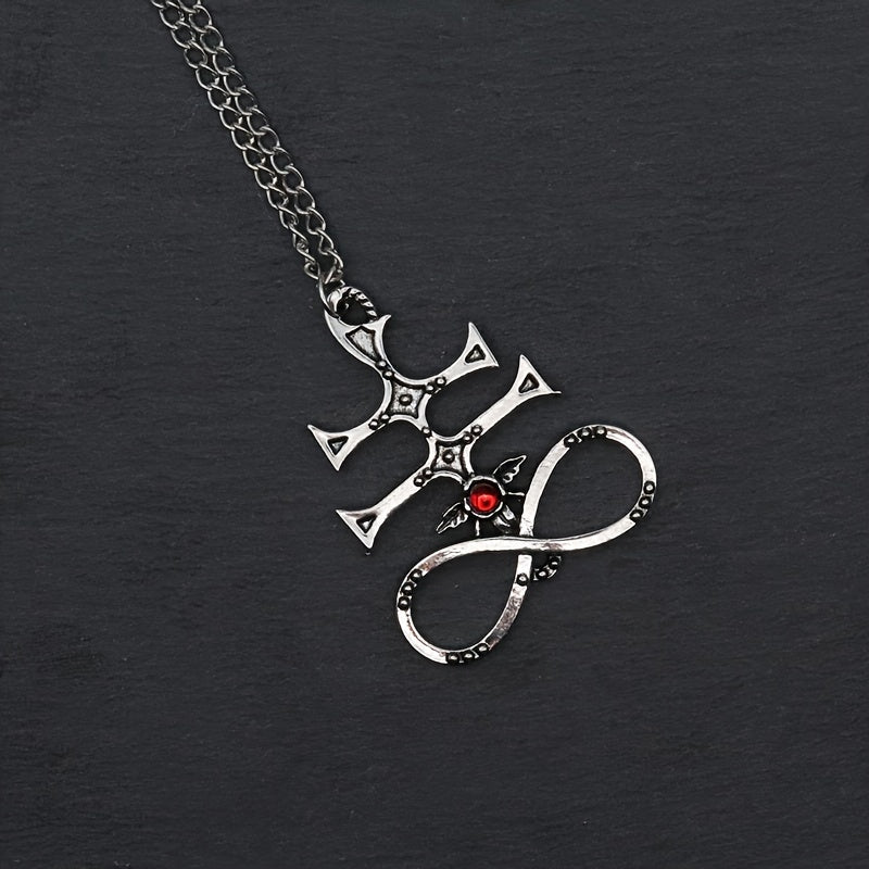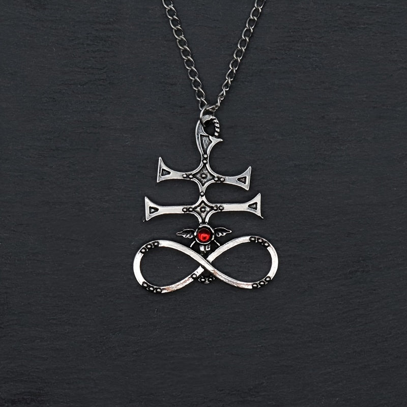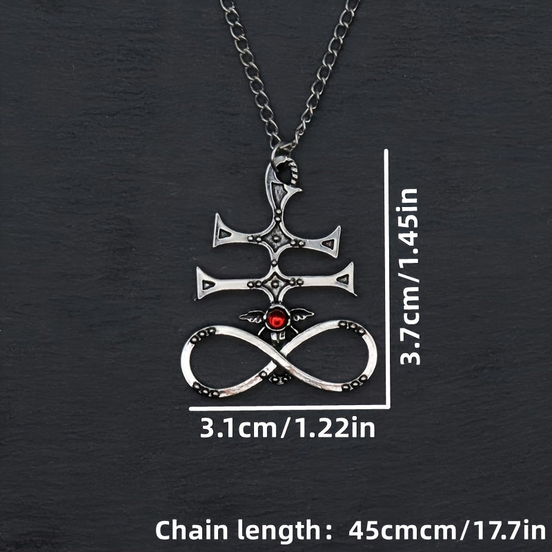 This demon wings pendant necklace is a stylish accessory for men. Features a red gemstone that adds a touch of sophistication. Perfect for parties or as a gift.