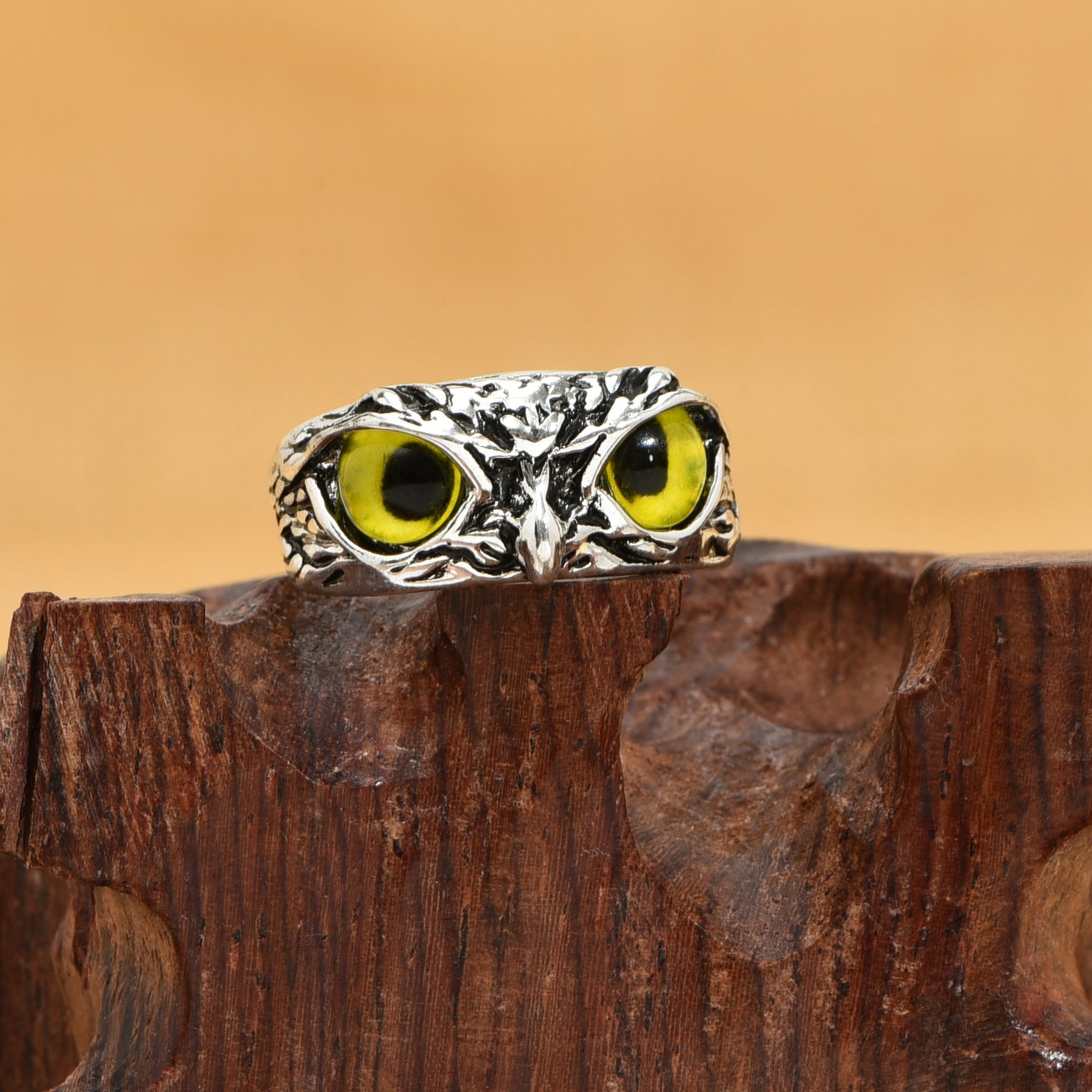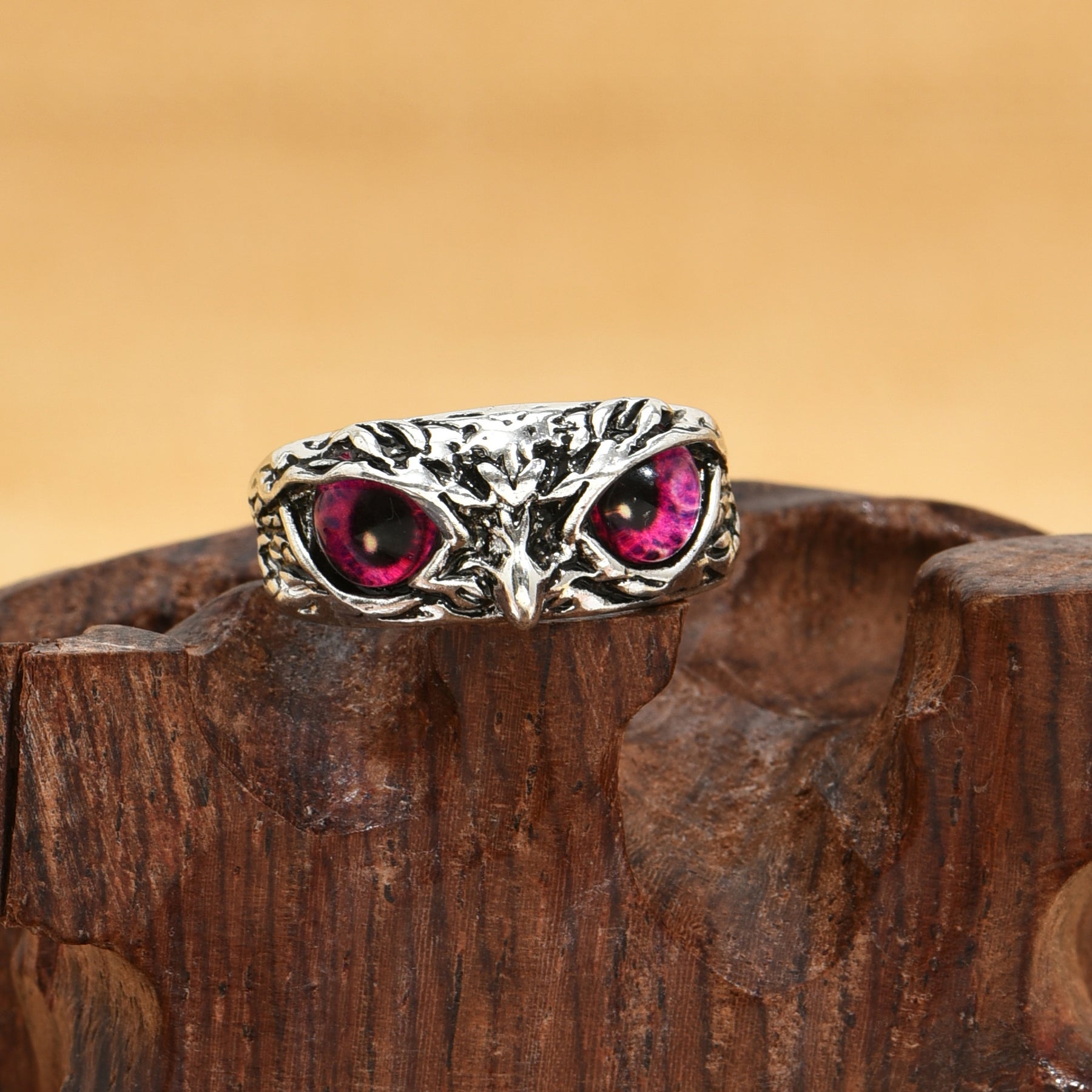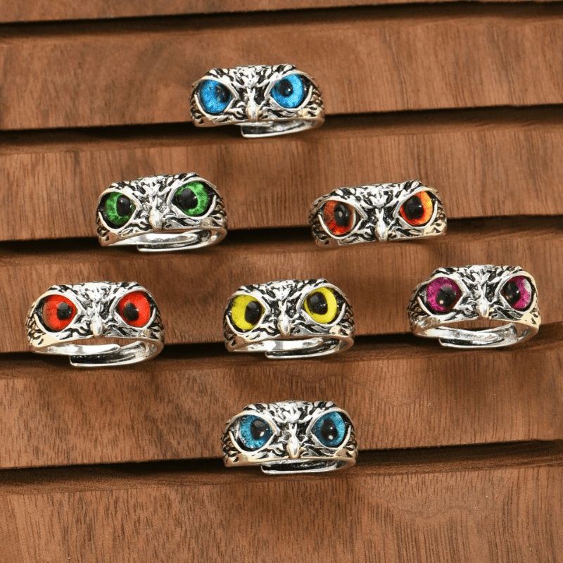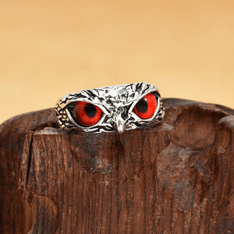 Elegant vintage owl statement ring with Devil's Eye design, adjustable opening. Perfect addition to your jewelry collection.