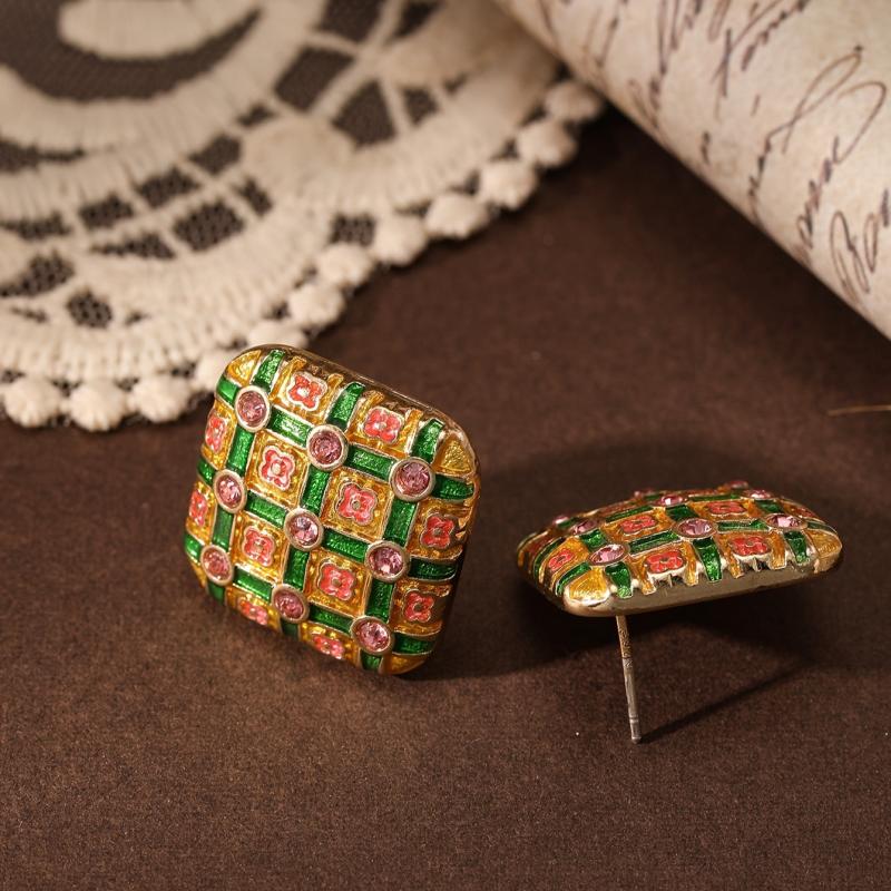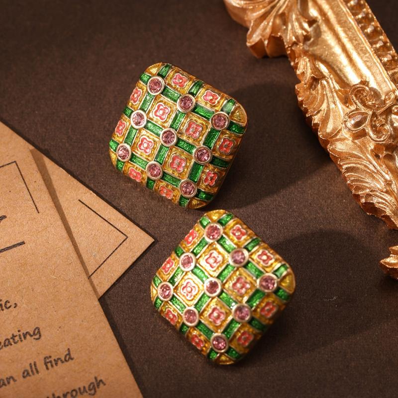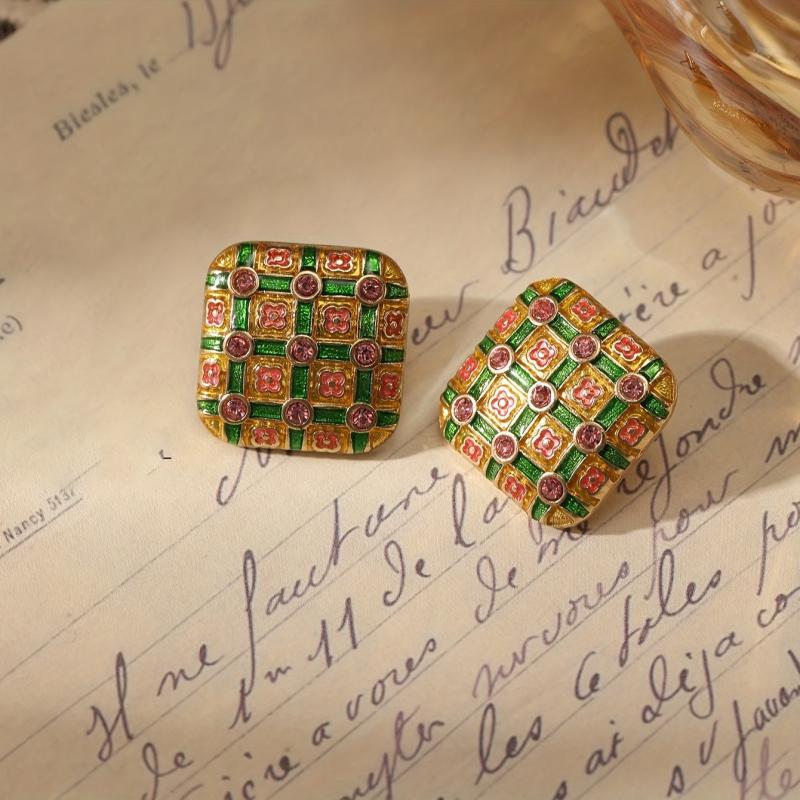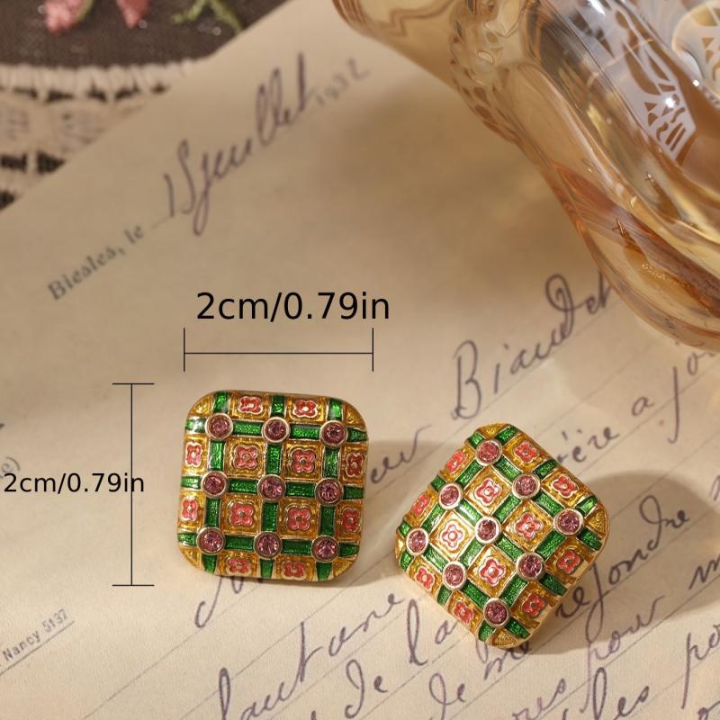 Add a pop of color to your outfit with these vintage-inspired enamel geometric earrings. Made from zinc alloy with rhinestone accents, they are ideal for daily wear and parties. The perfect gift for Mother's Day.