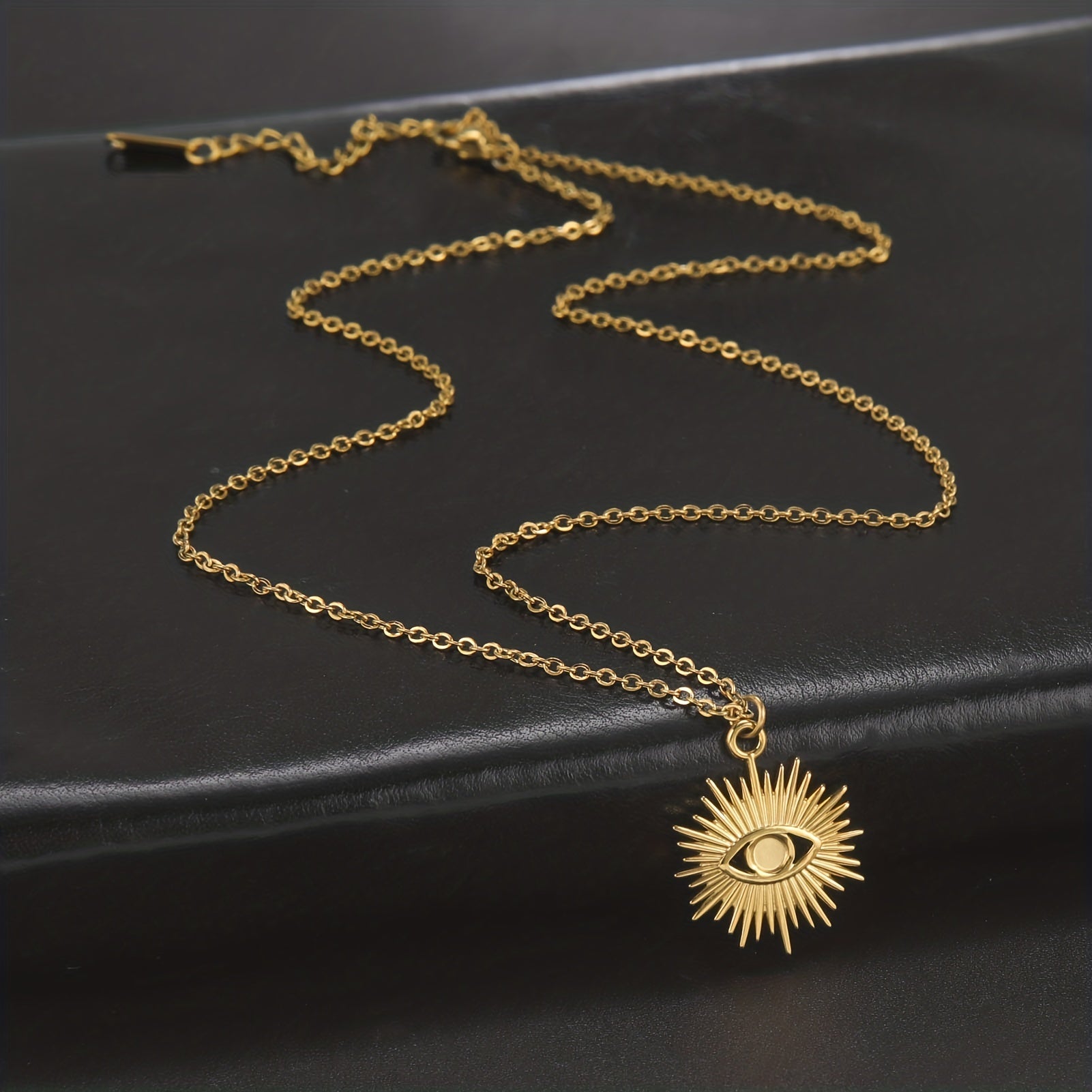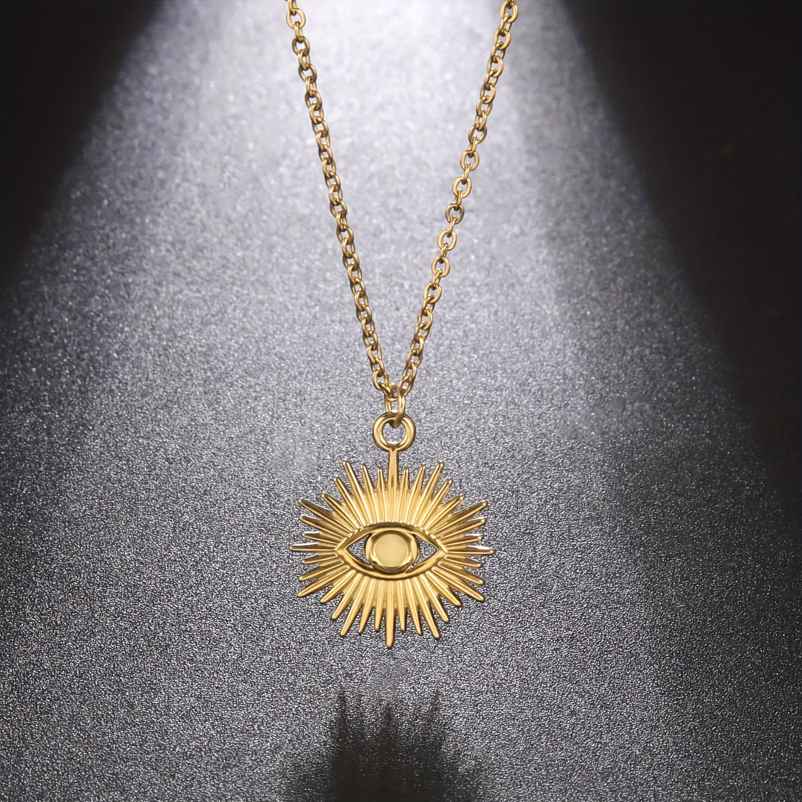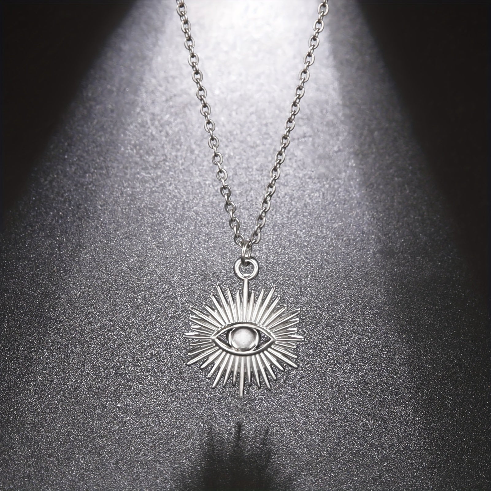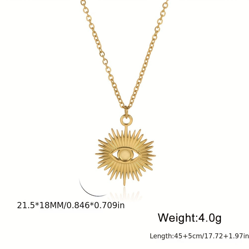 This vintage evil eye chain necklace is made of stainless steel with a unique pendant design. It's a stylish and protective piece of jewelry.
