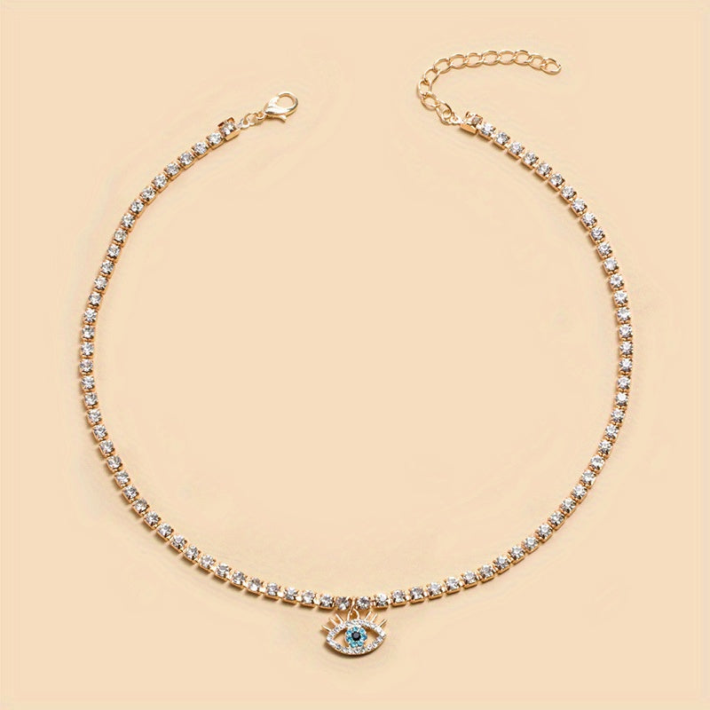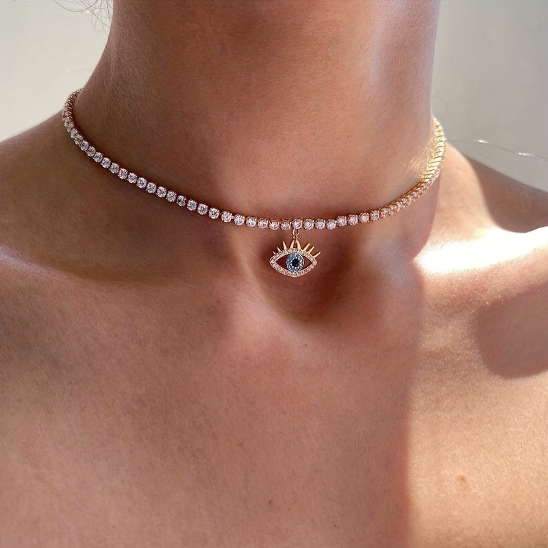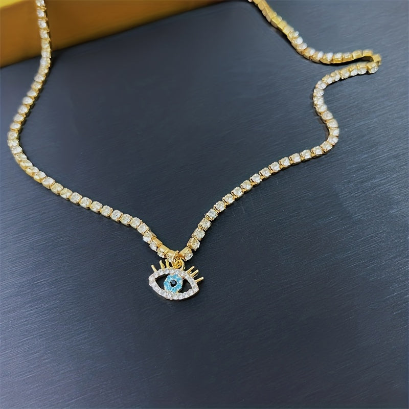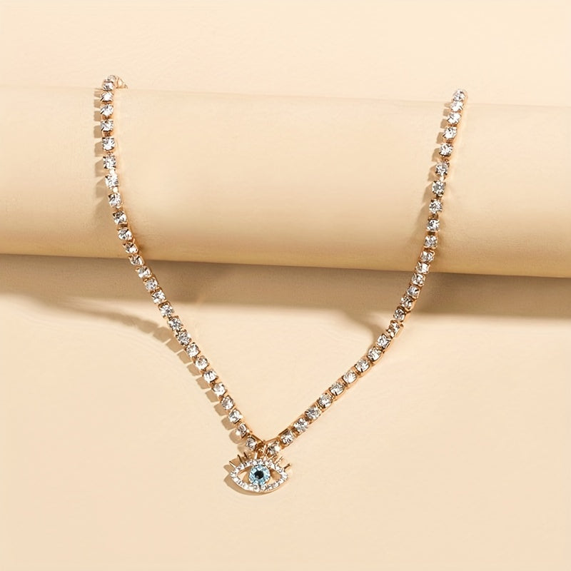 Add a touch of vintage charm with this Evil's Eye necklace. Made of alloy with rhinestone accents, 18K plated. A perfect gift for any occasion.