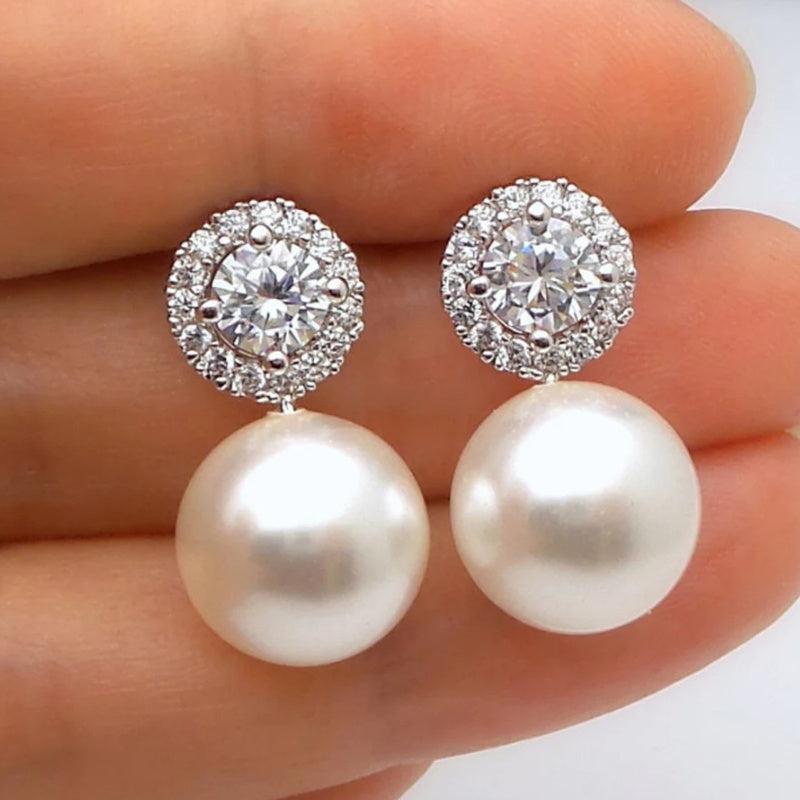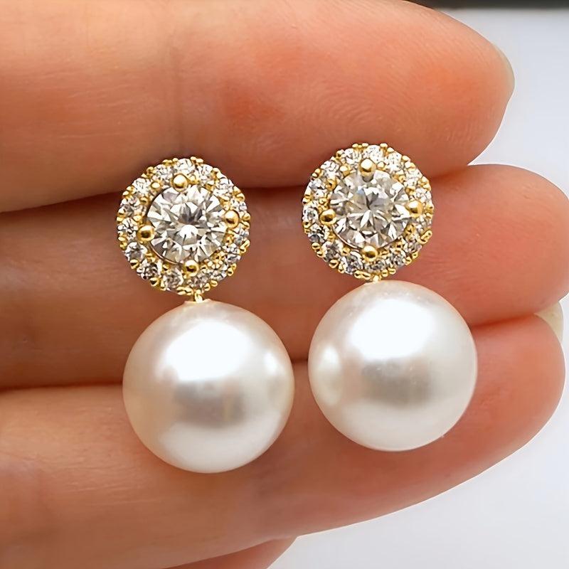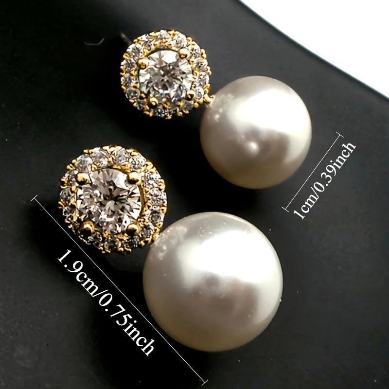 Elegant and timeless vintage-inspired faux pearl dangle earrings perfect for weddings, parties, and casual attire. Featuring a beautiful golden plated design with June birthstone accents.