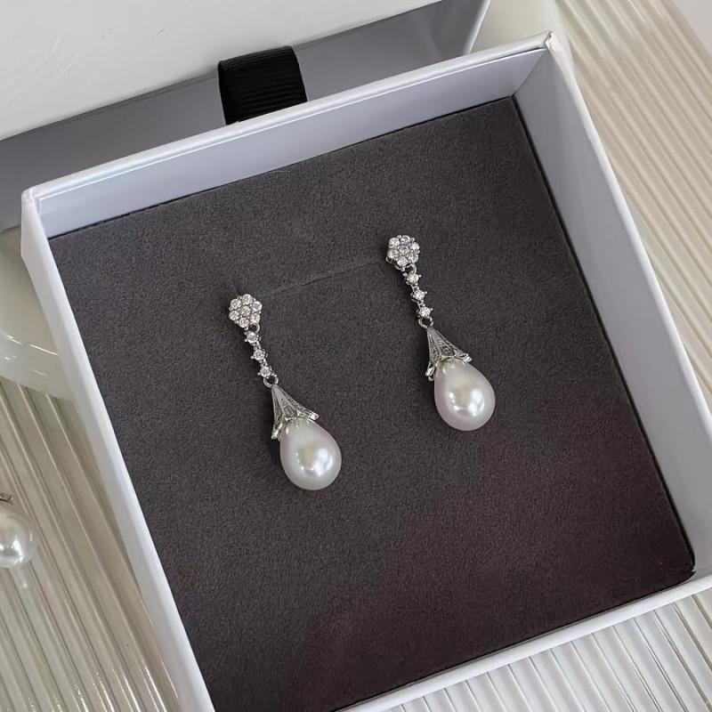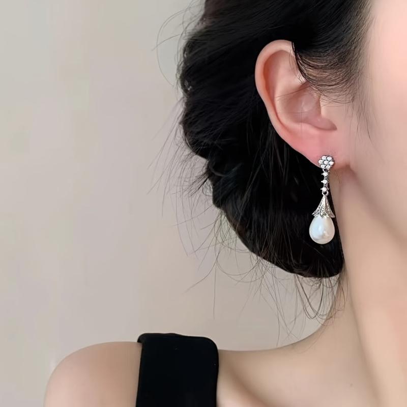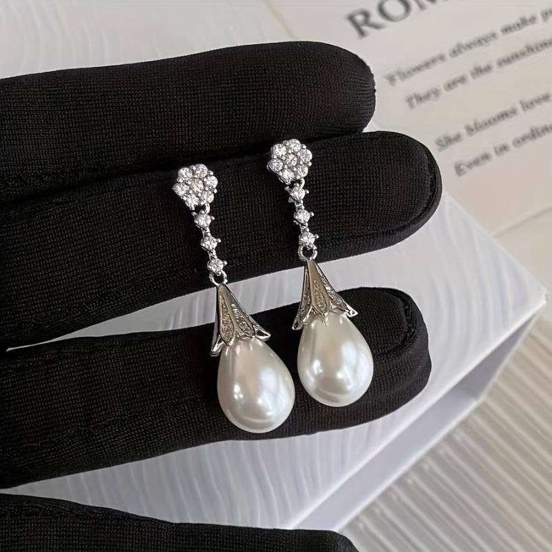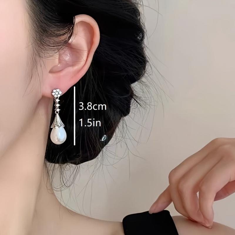 Alloy earrings with faux pearls and sparkling accents, perfect for formal events. Quirky design adds a touch of elegance to your outfit.