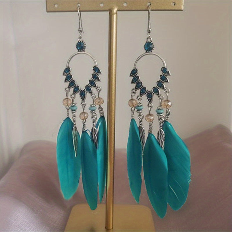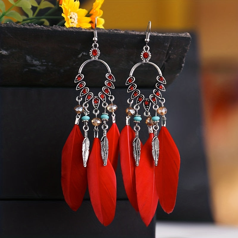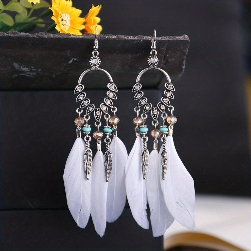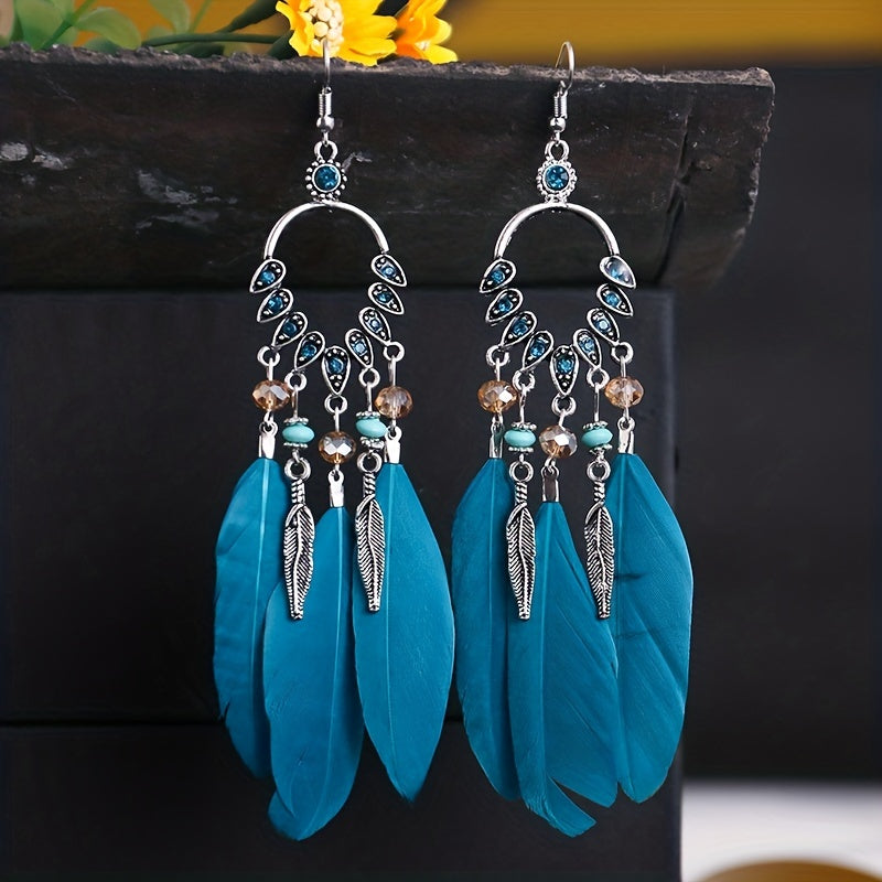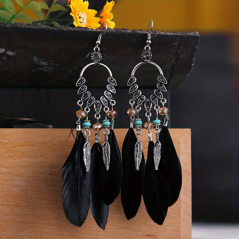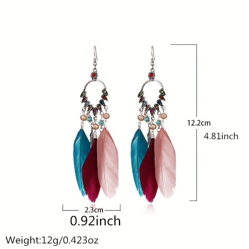 These bohemian vintage feather dangle earrings feature an ethnic style leaf tassel design that adds a touch of elegance to your look. They are perfect for women looking for unique and stylish jewelry accessories.