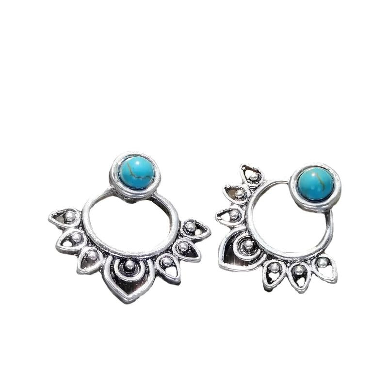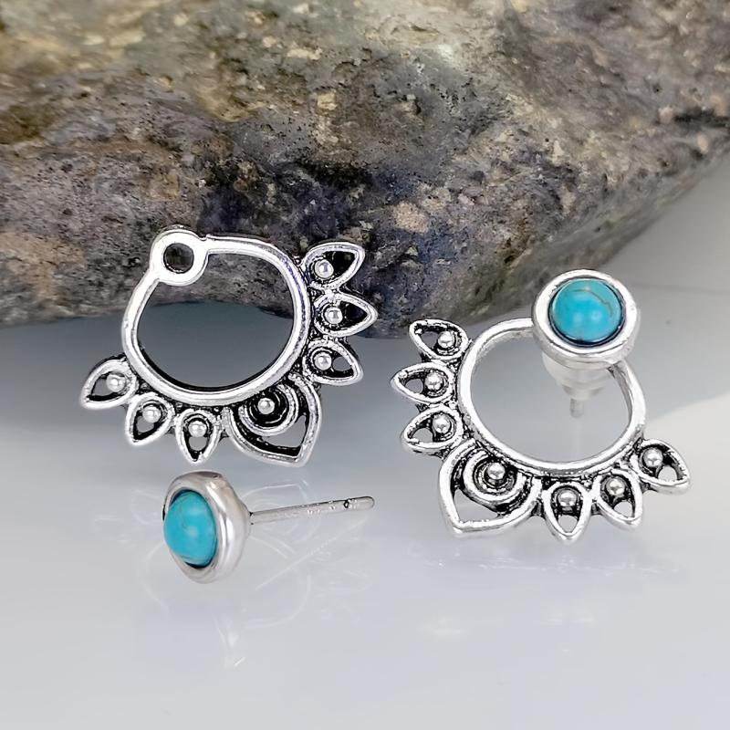 This pair of ear jackets features a vintage flower design with turquoise inlay, adding a retro touch to your look. Made from high-quality alloy, these earrings are ideal for both everyday wear and special occasions. A great souvenir to remember your travels.