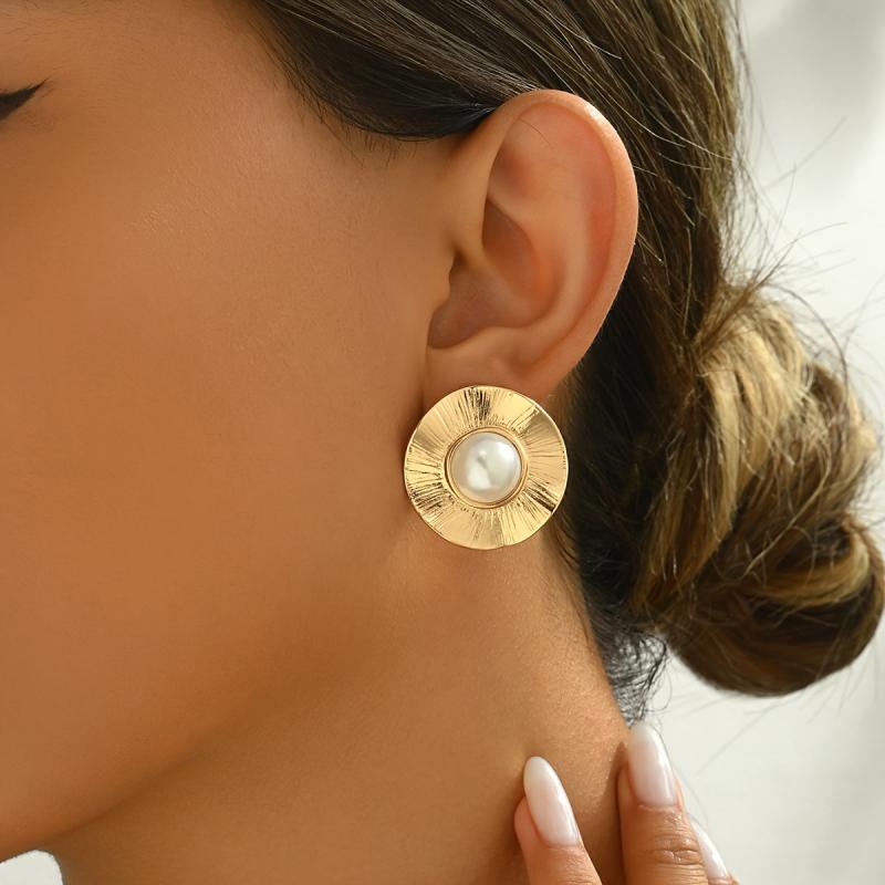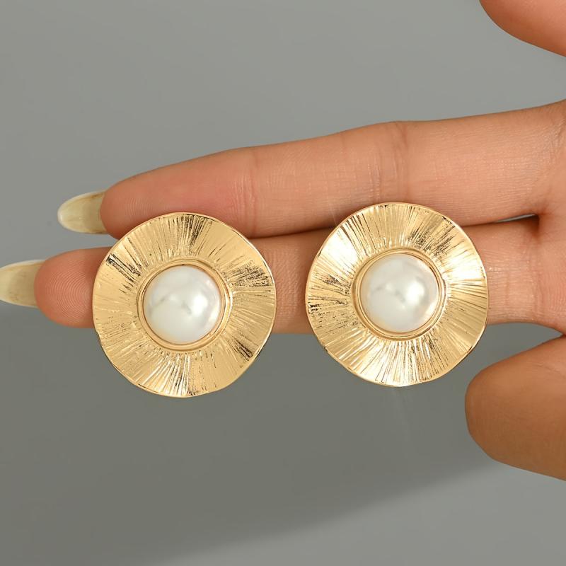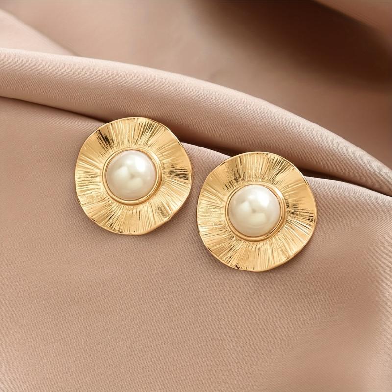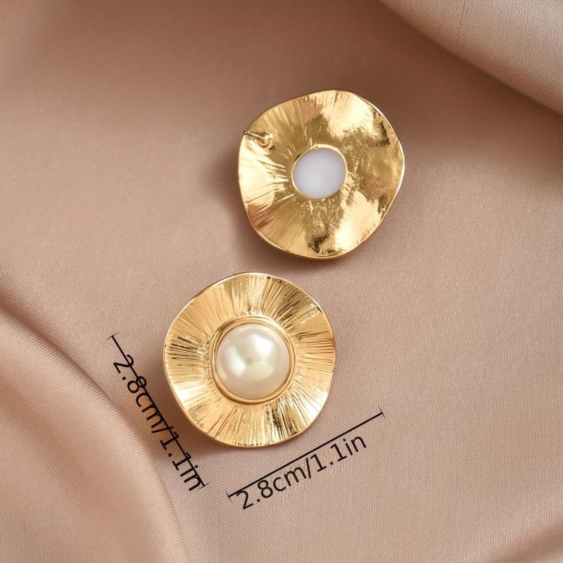 Add a touch of French elegance to your outfit with these vintage style round button earrings. Featuring pleats and artificial pearls, these earrings are perfect for women who appreciate a unique and classy accessory.