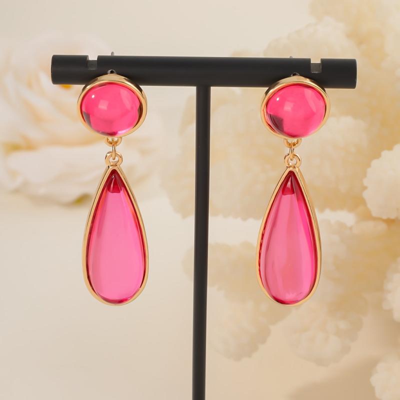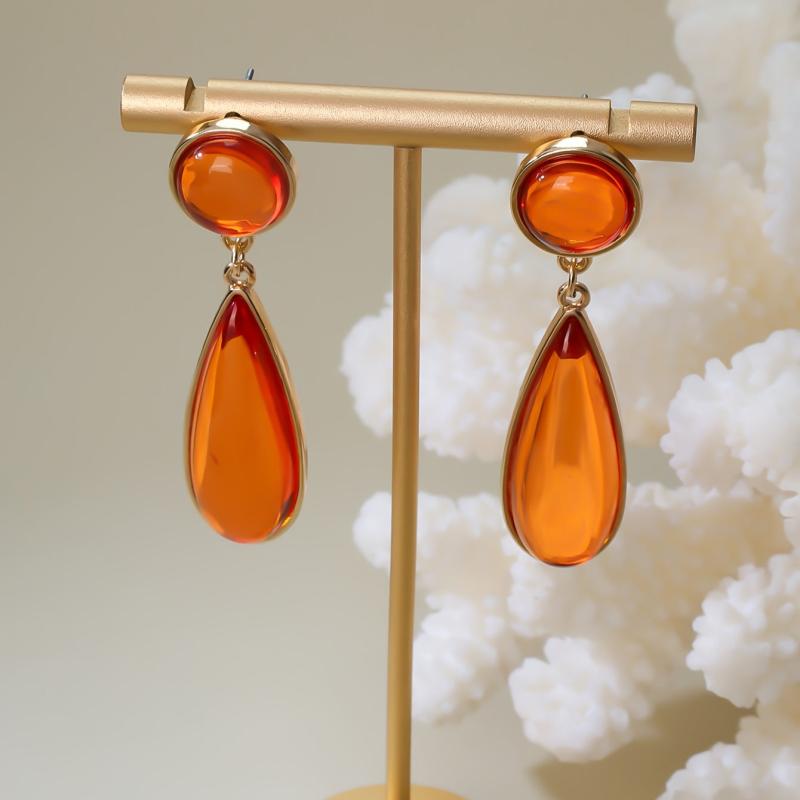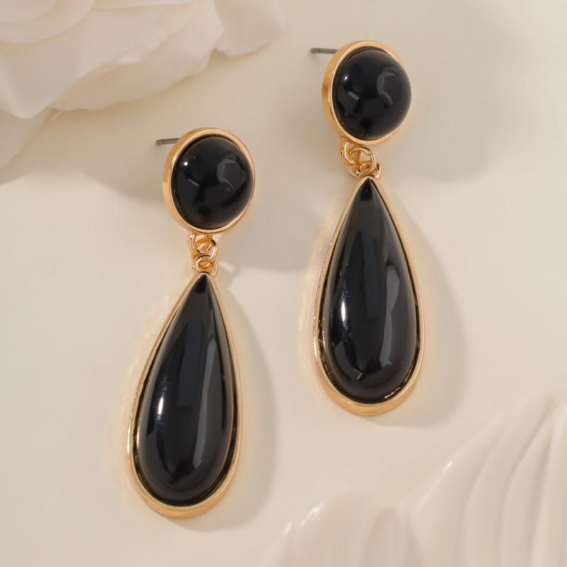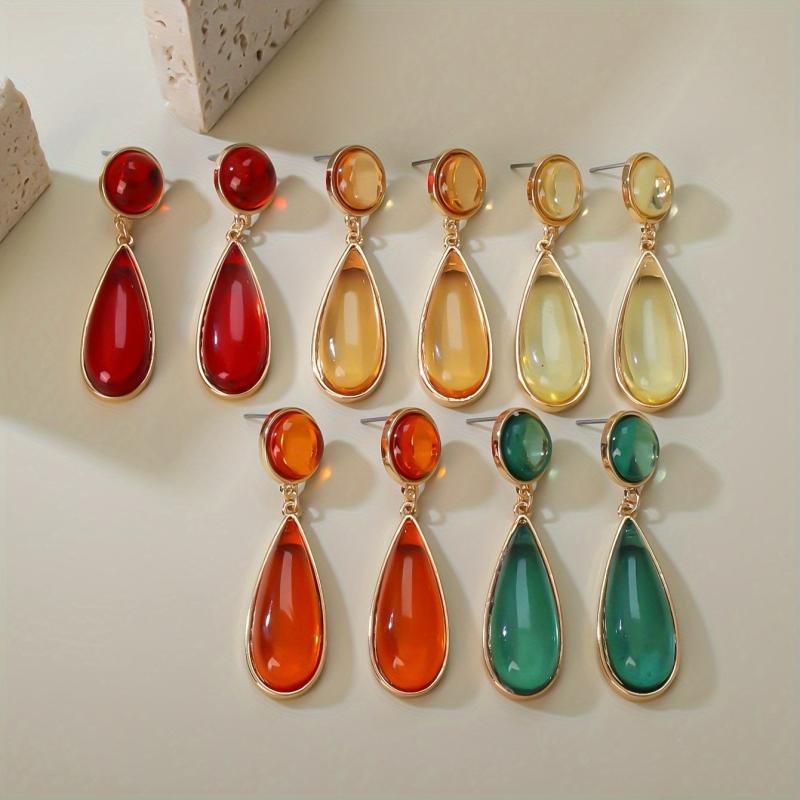 These elegant teardrop earrings feature a stunning combination of green and golden accents, perfect for both daily wear and special occasions.
