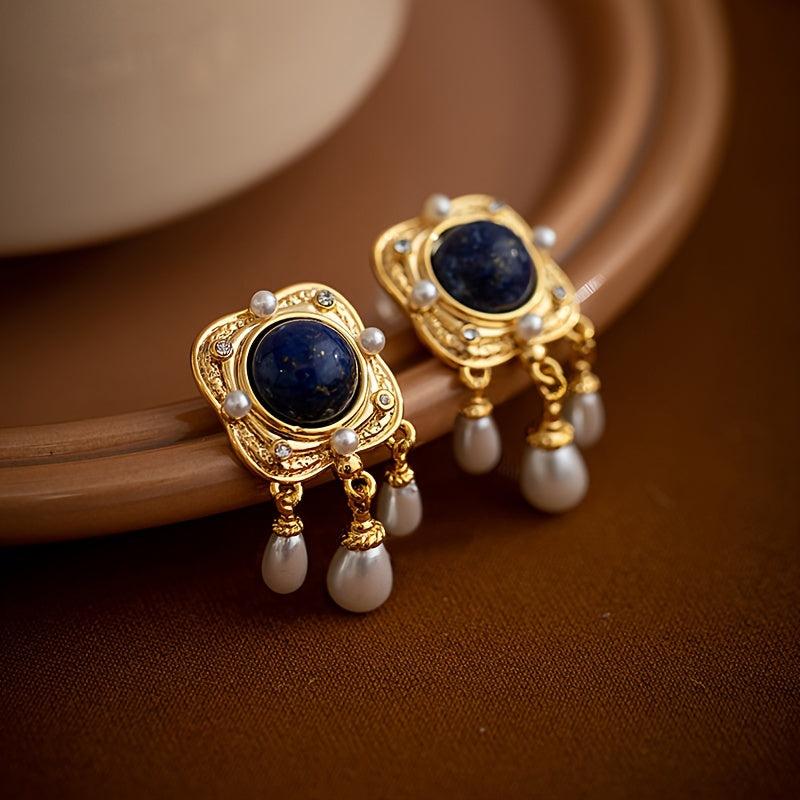Add a touch of elegance to your outfit with these vintage geometric square dangle earrings. Crafted with 18K golden plated zinc alloy and featuring a rhinestone mosaic design, these earrings are perfect for any occasion.