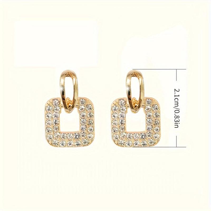 Elegant alloy square stud earrings with sparkling rhinestones. Ideal for daily wear in all seasons and special occasions.
