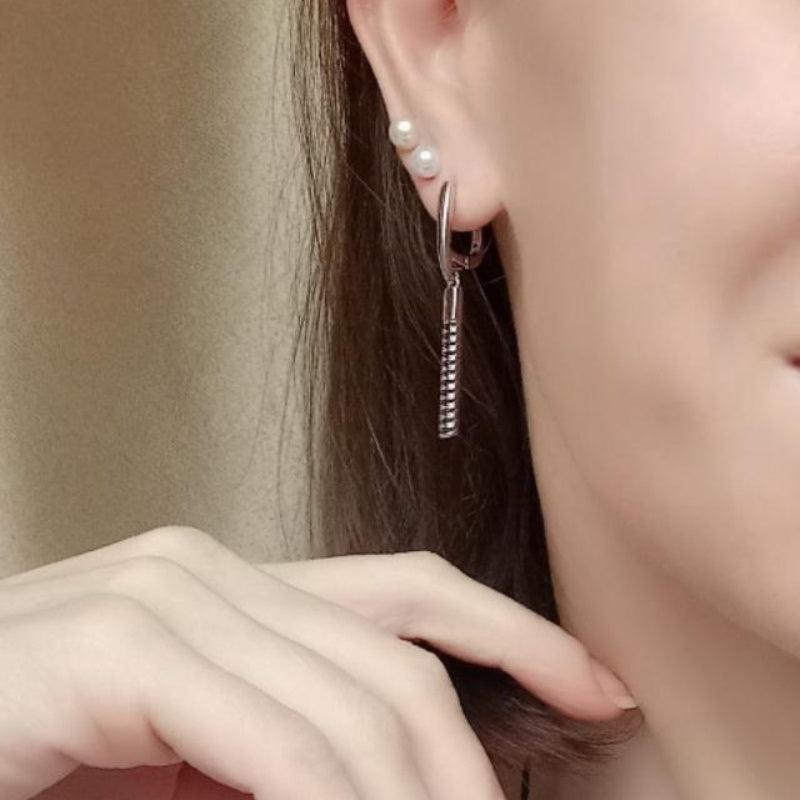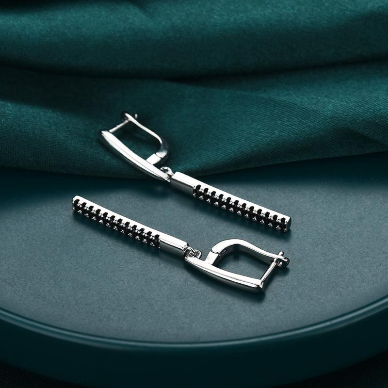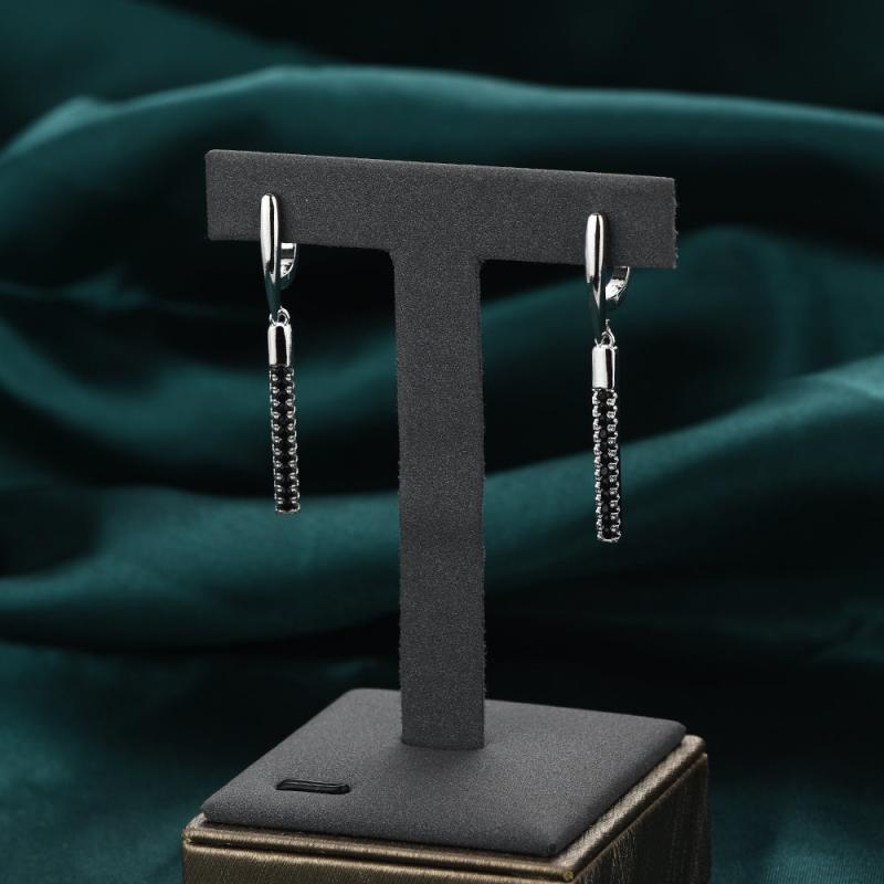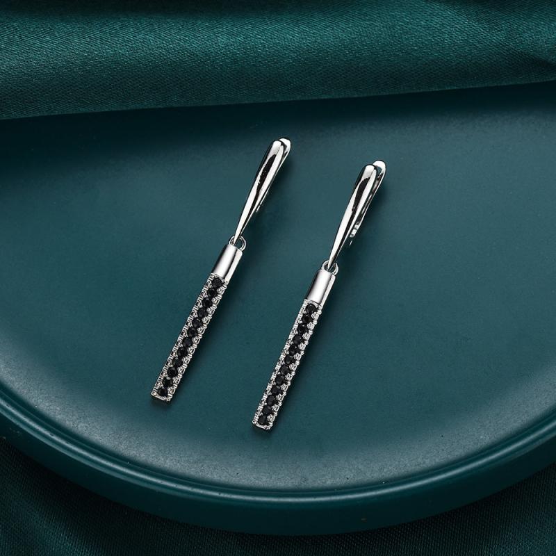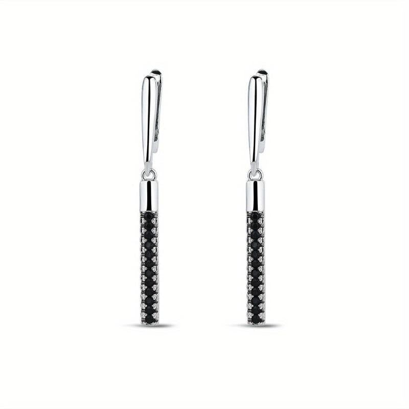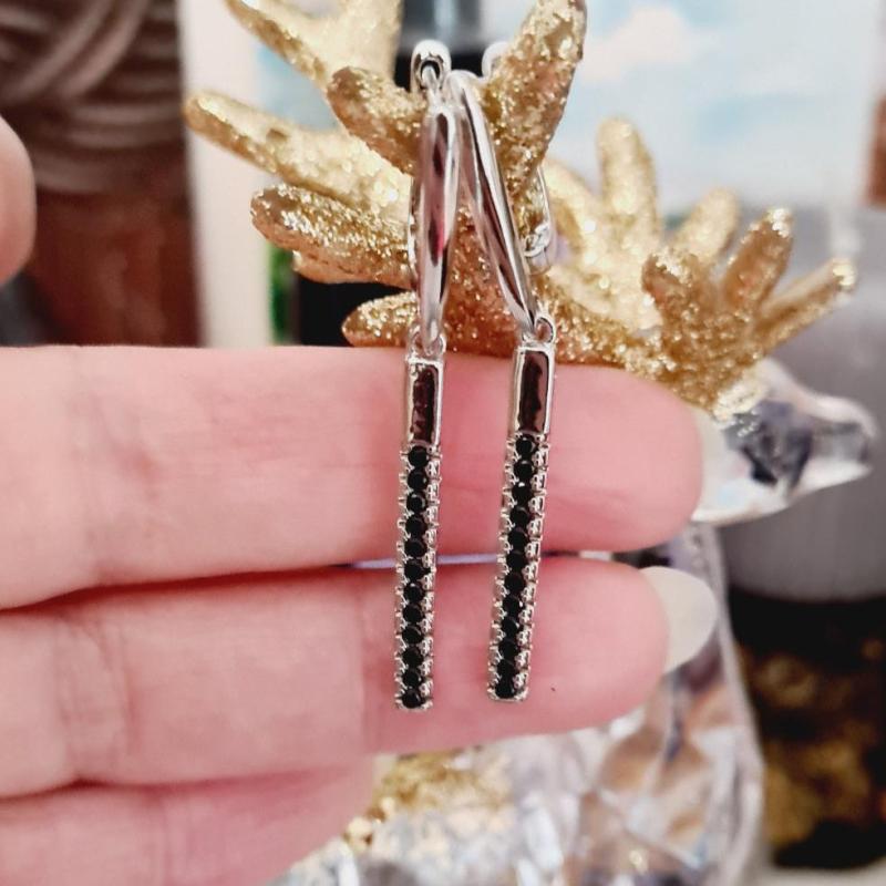 Pair of vintage long drop earrings featuring geometric stone design with cubic zirconia. Nickel copper hypoallergenic construction for women.