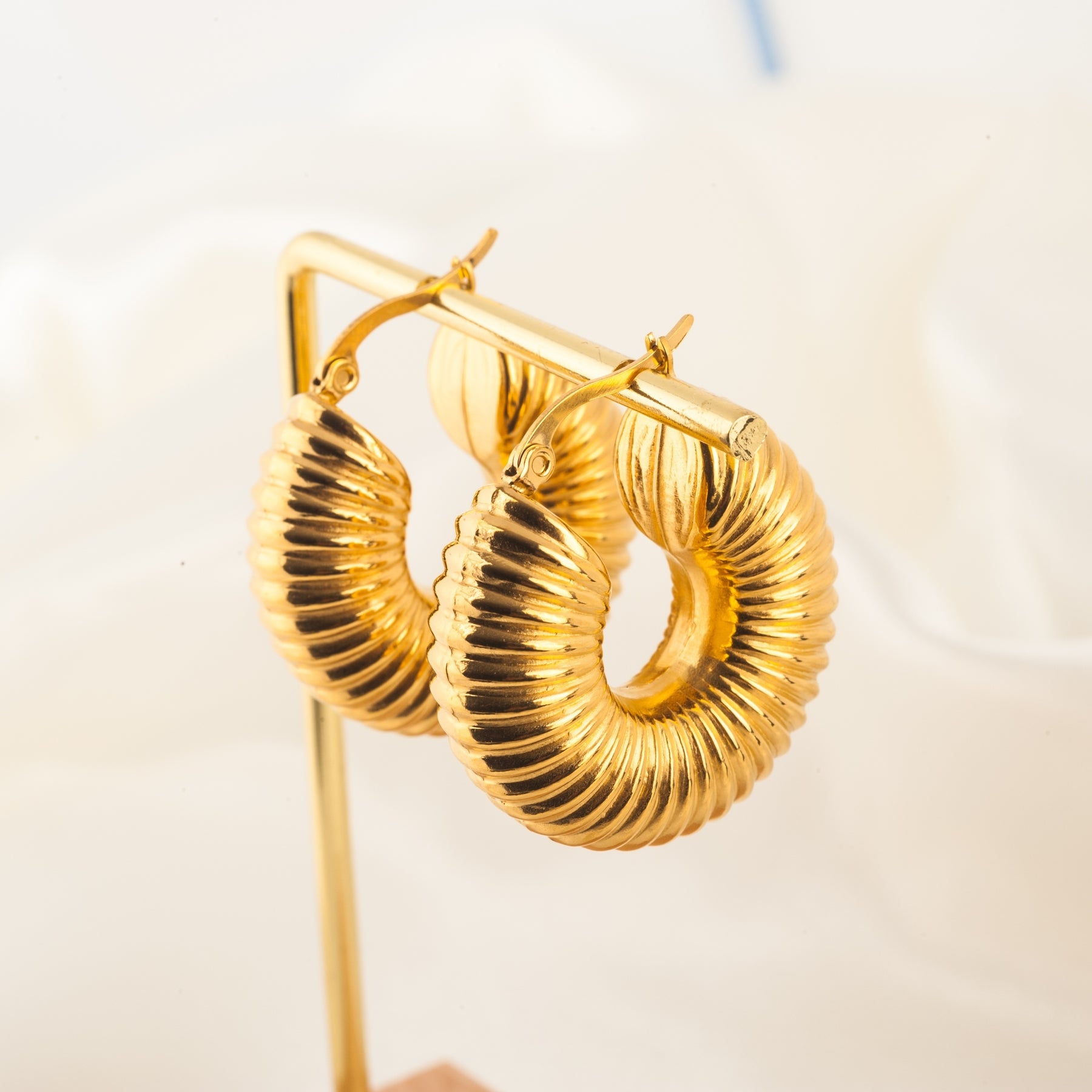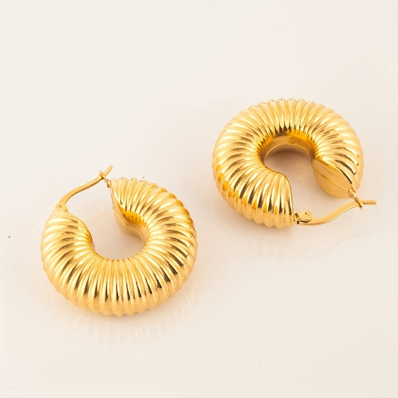 Add a touch of elegance to your outfit with these vintage gold geometric hoop earrings. Made of stainless steel, these hollow hoops are perfect for women.