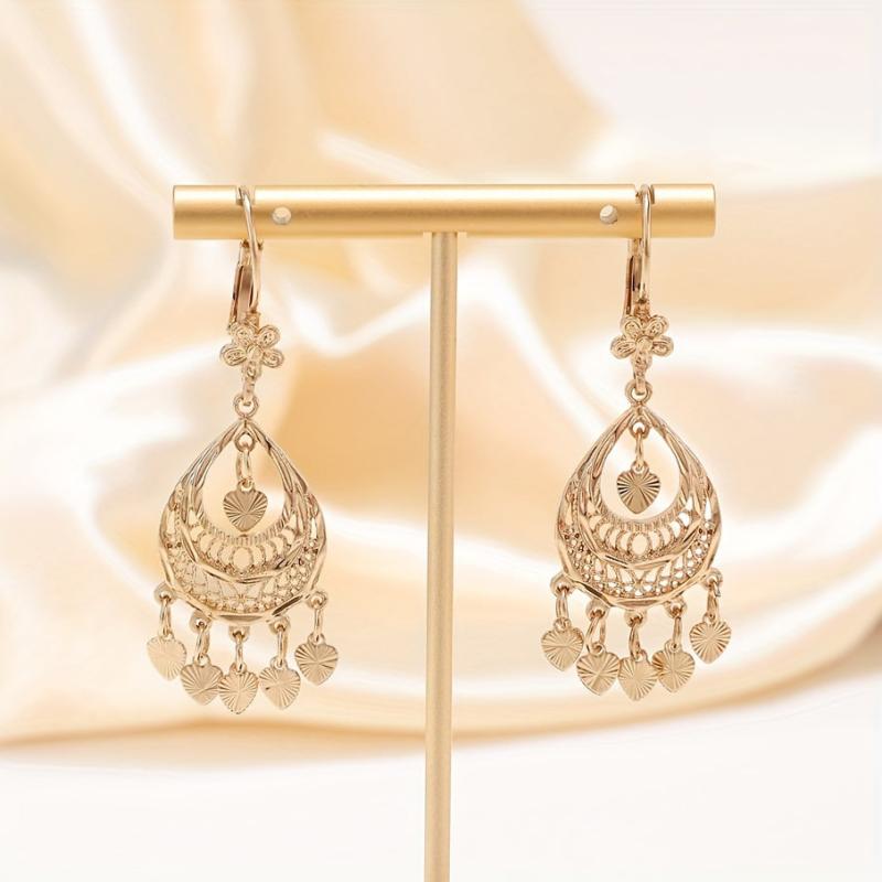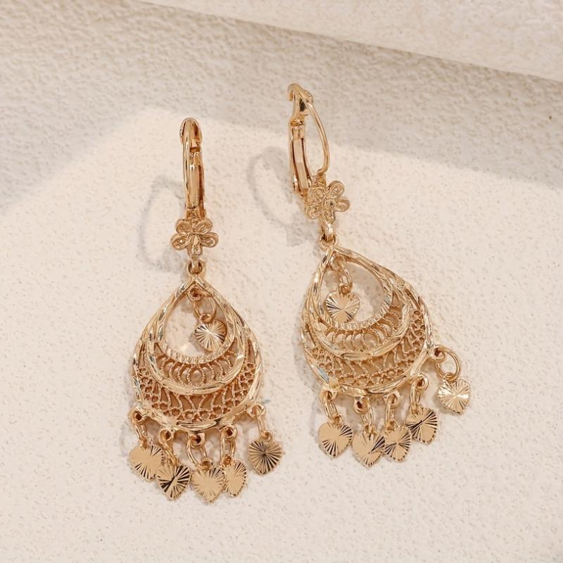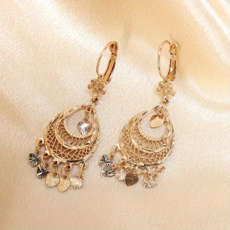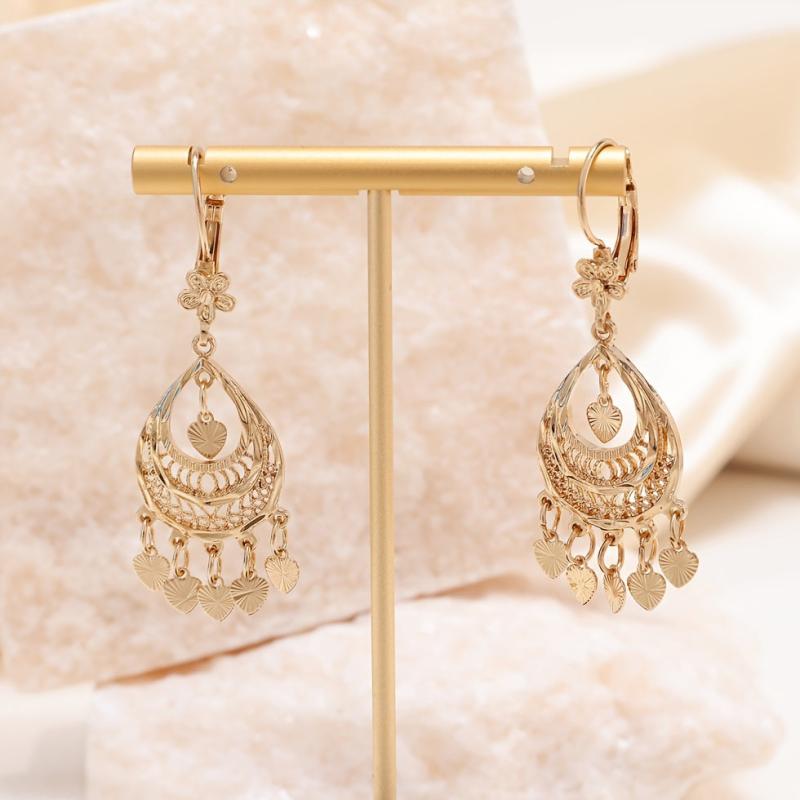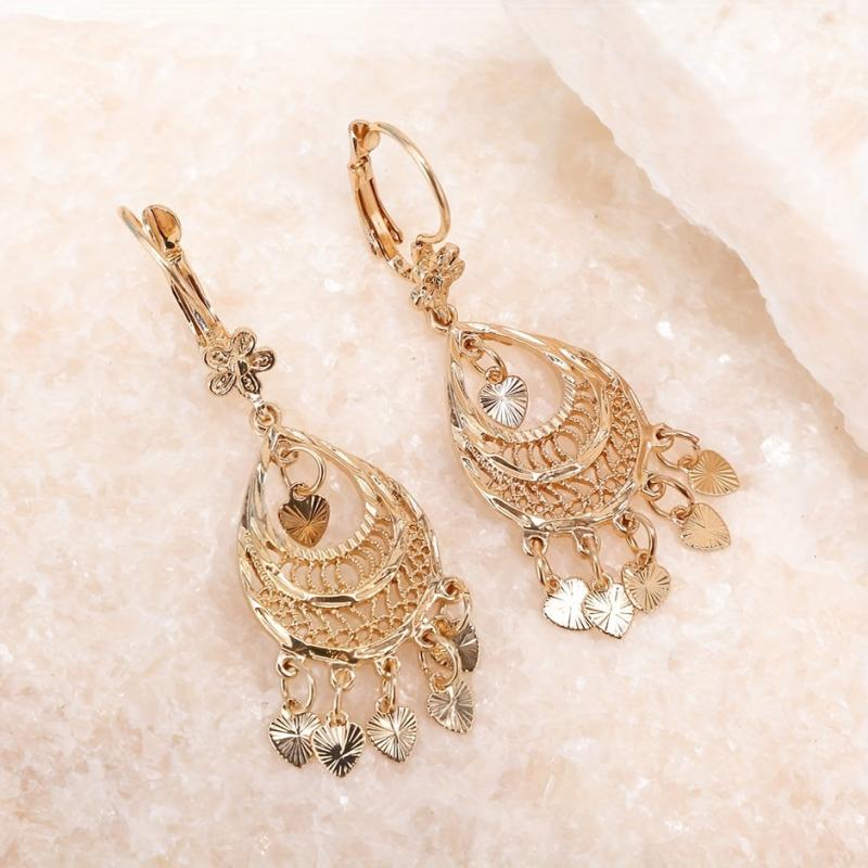 Add a touch of elegance to your outfit with these intricately designed heart-shaped filigree earrings featuring stylish tassels. Perfect for daily wear or special occasions.