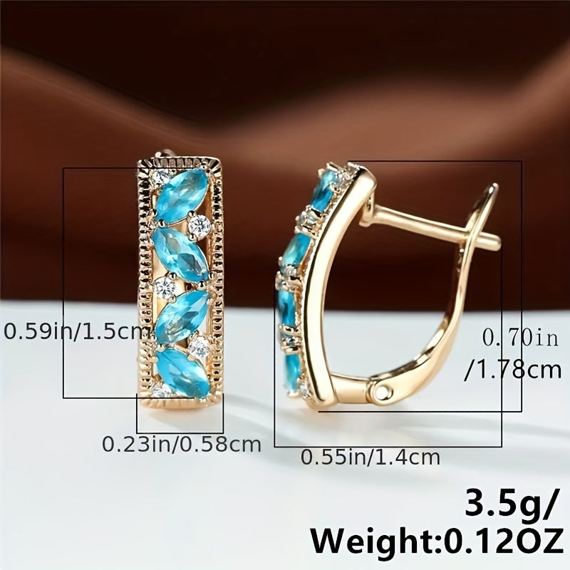 Add a touch of vintage charm to your outfit with these unique marquise cut aqua stone drop earrings. Perfect for anniversaries or special occasions.