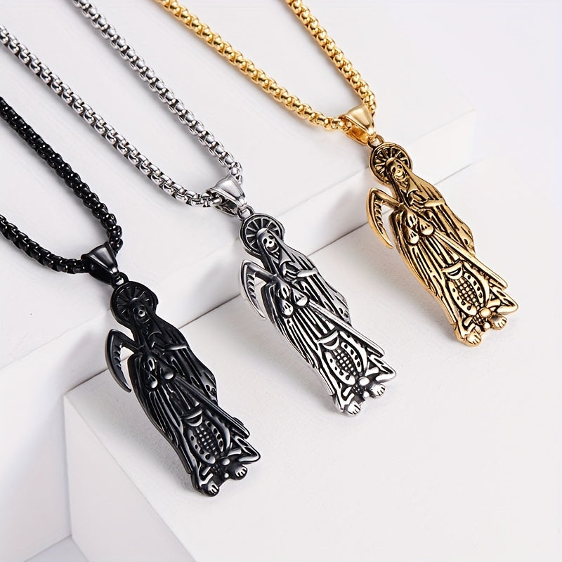 Embrace gothic hip hop style with this vintage stainless steel pendant necklace featuring a skull design. Perfect for men and women to accessorize for Halloween or daily wear.