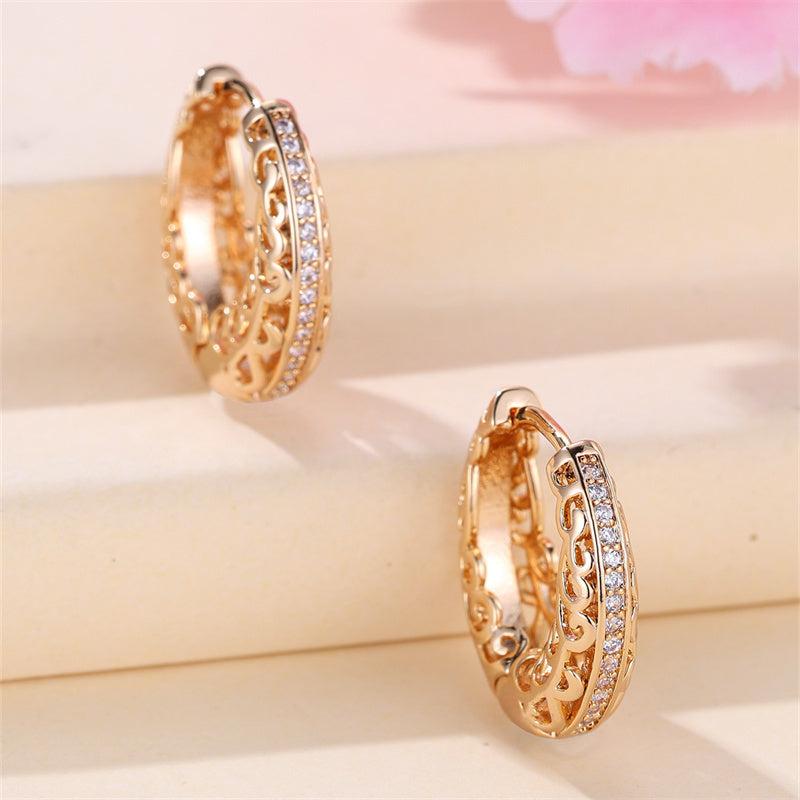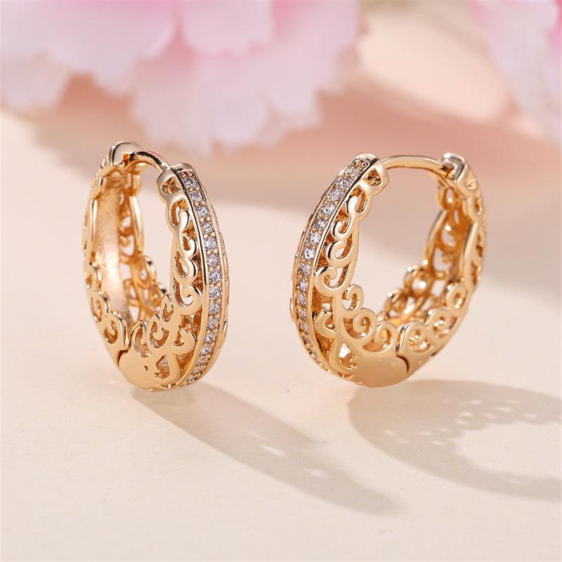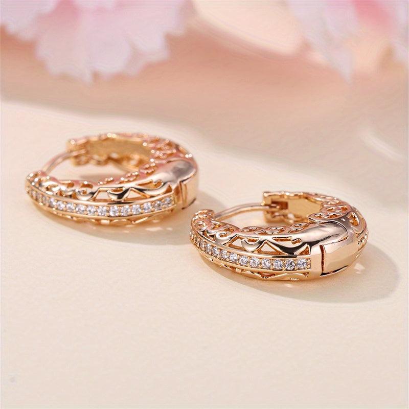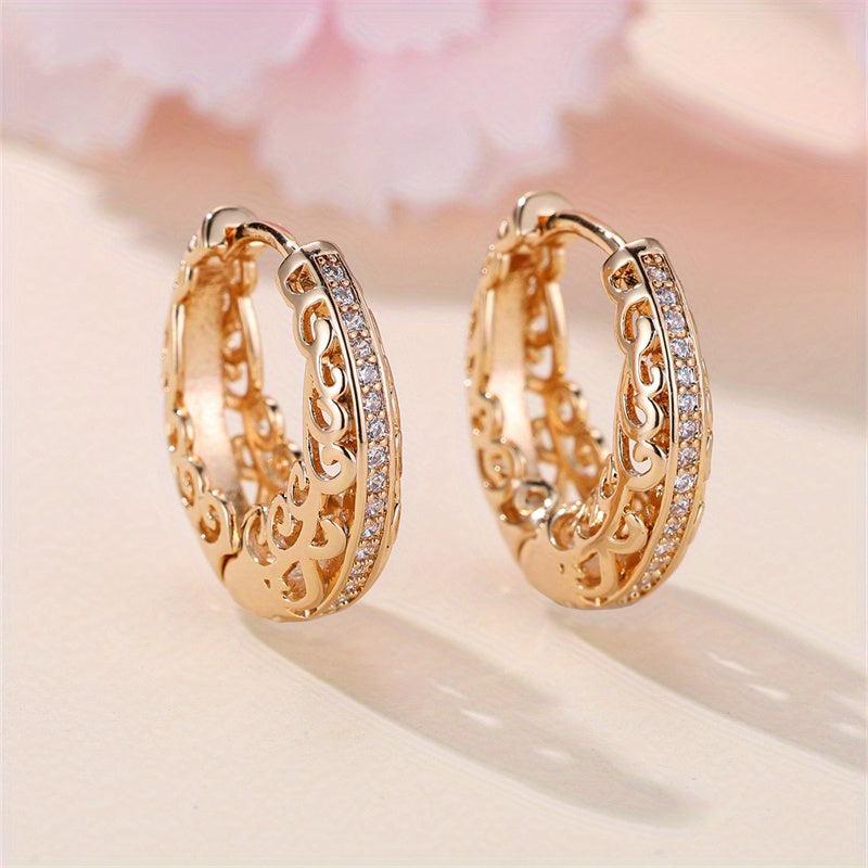 These elegant hoop earrings feature intricate detailing and a smooth polished finish, ideal for weddings or casual attire. The sparkling stones add a touch of glamour to any outfit.