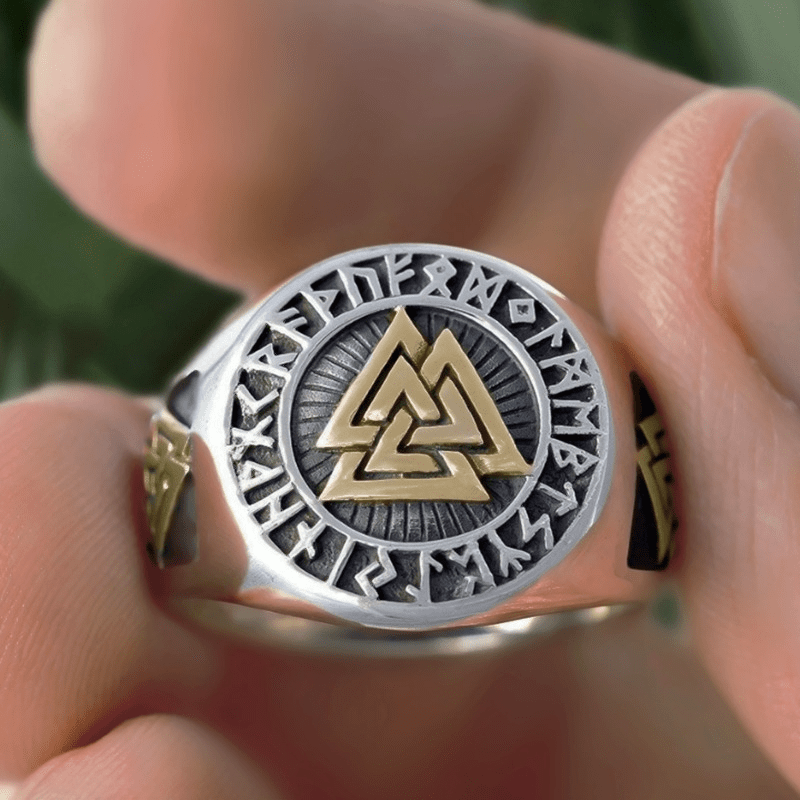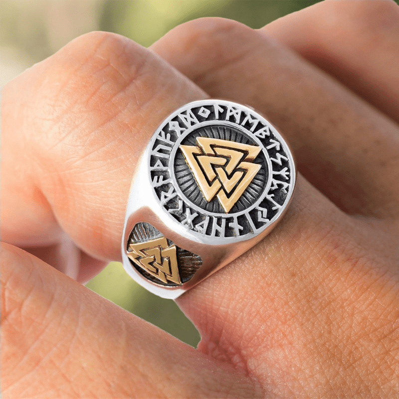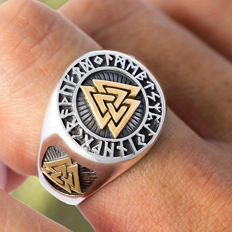 Add a touch of ancient mystique with this vintage triangle ring featuring rune designs. Perfect for men who love unique accessories.