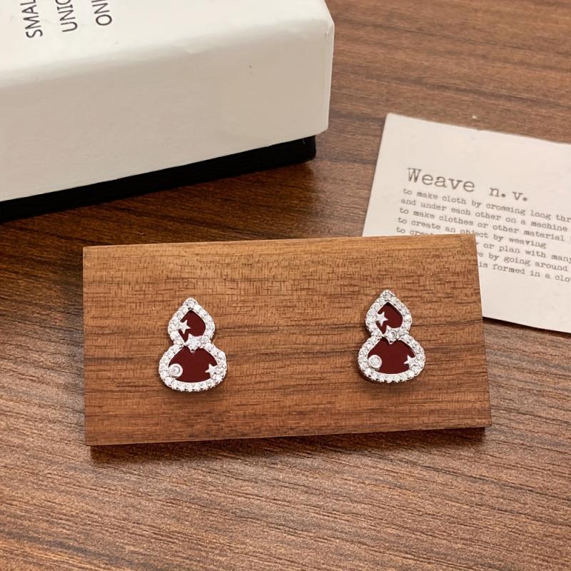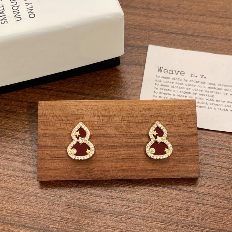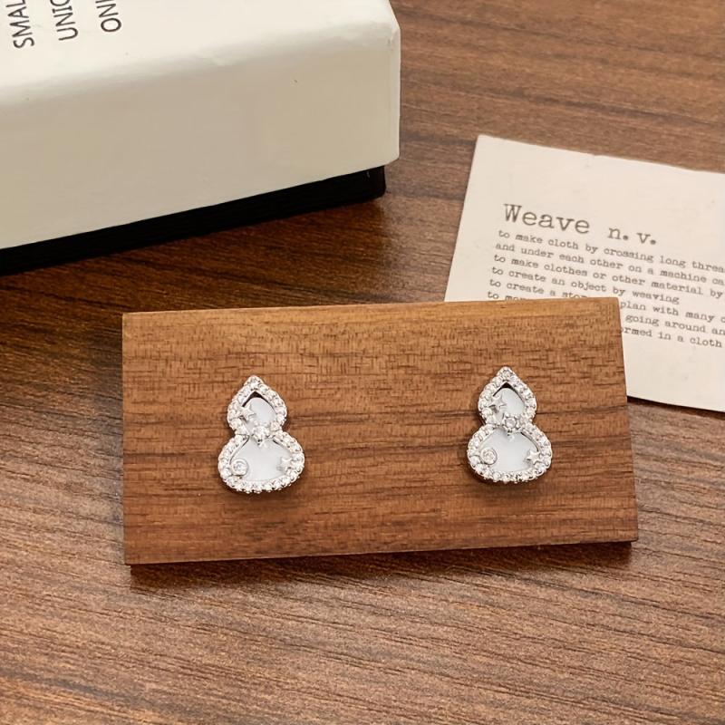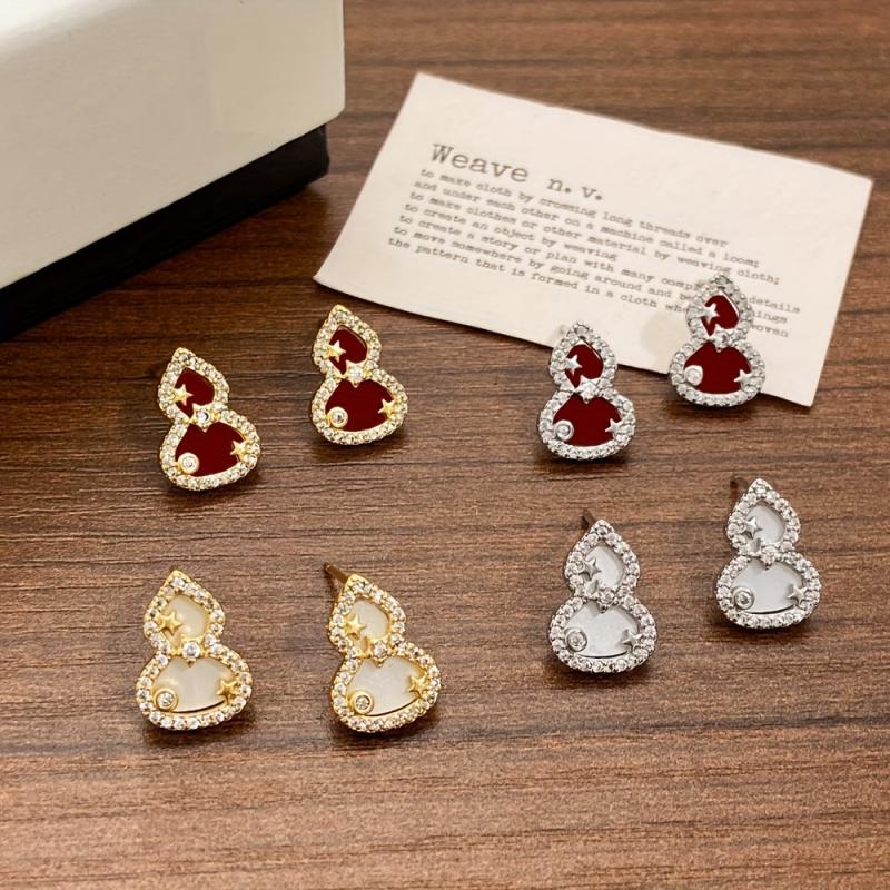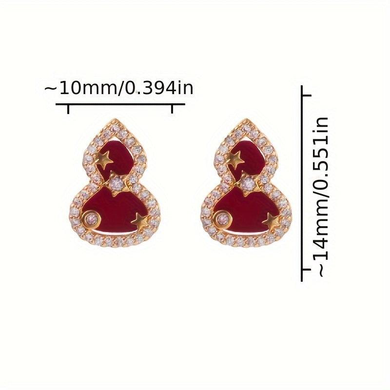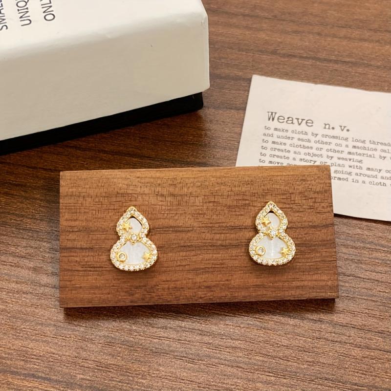 Chic and stylish gourd-shaped stud earrings made with copper and sparkling synthetic zirconia accents. Ideal for daily wear or to add a touch of elegance to holiday parties.