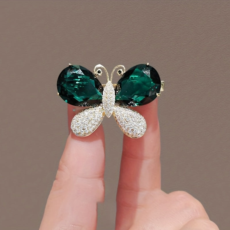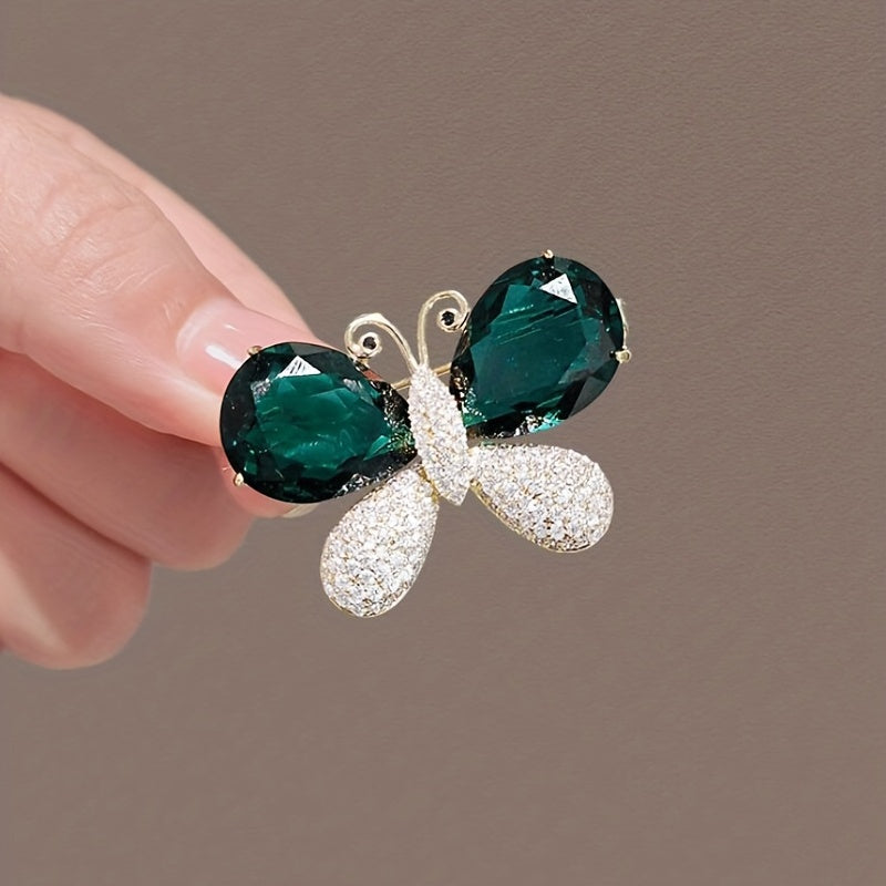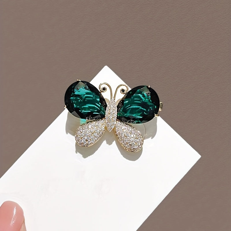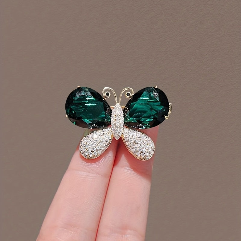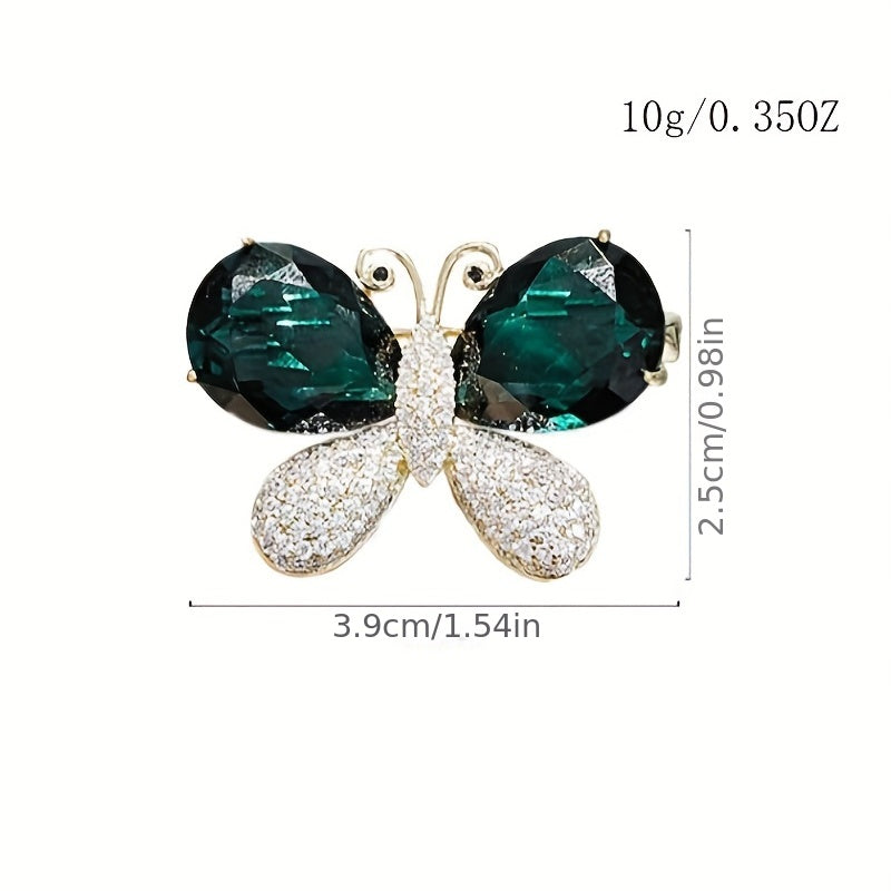 Add a touch of elegance to your outfit with this vintage butterfly brooch pin featuring court green crystal rhinestones. Perfect for accenting your suit, cheongsam, or collar.