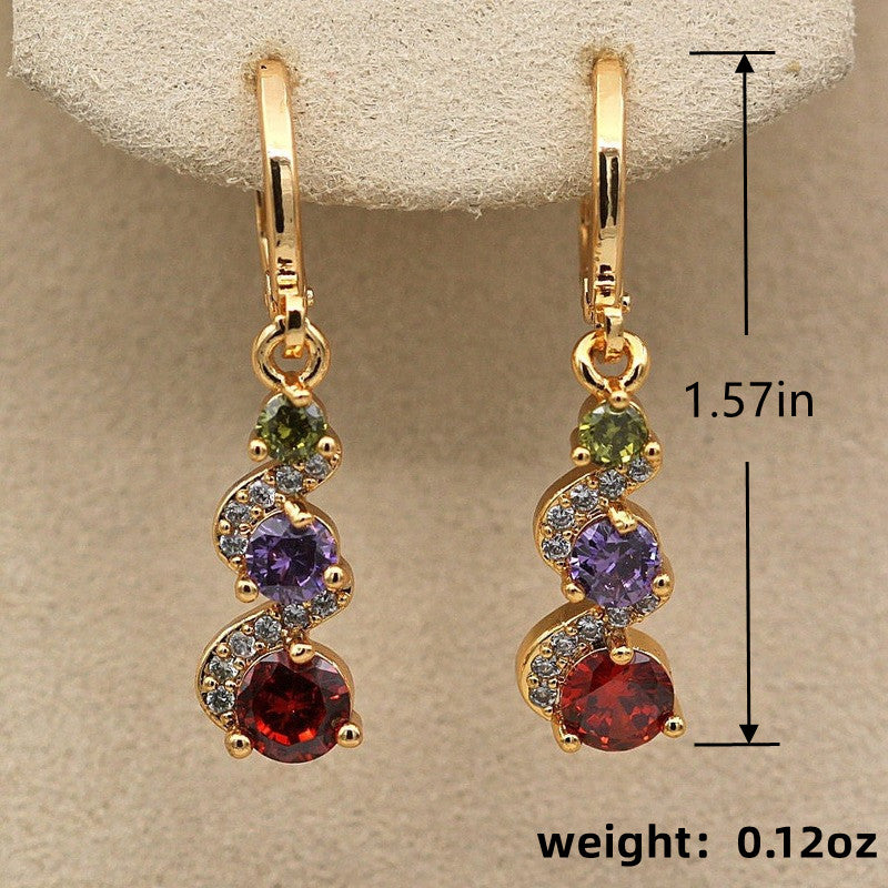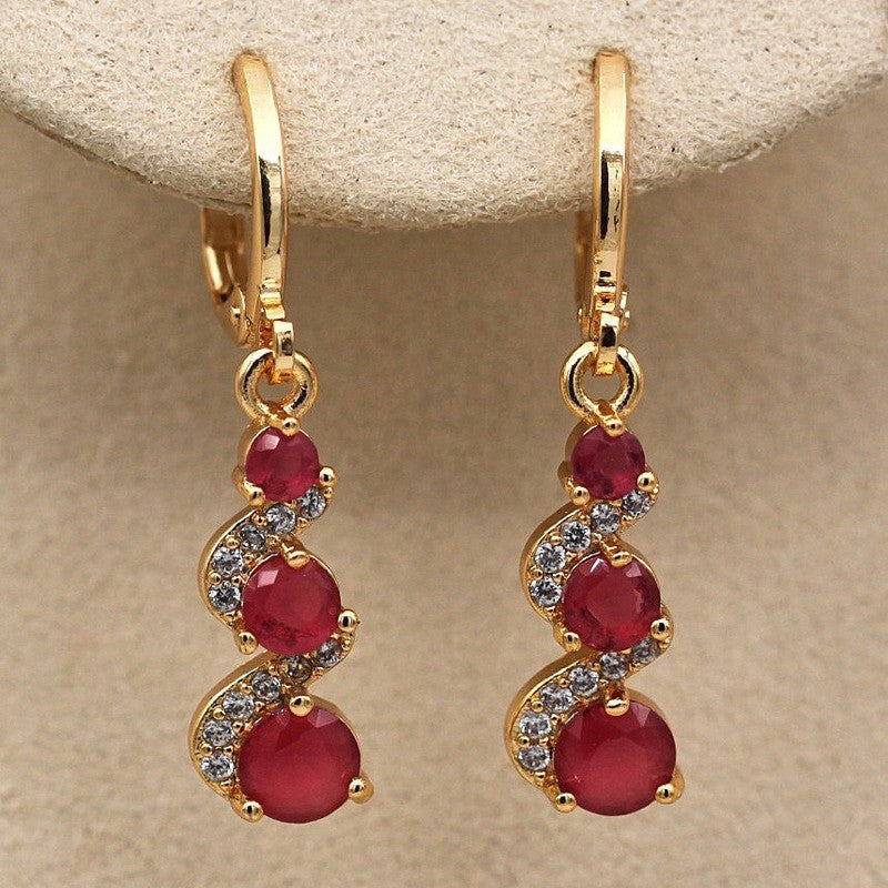 Elegant vintage green stone dangle earrings with a swirl round design, perfect for weddings and parties. Plated in 14K for a luxurious look.