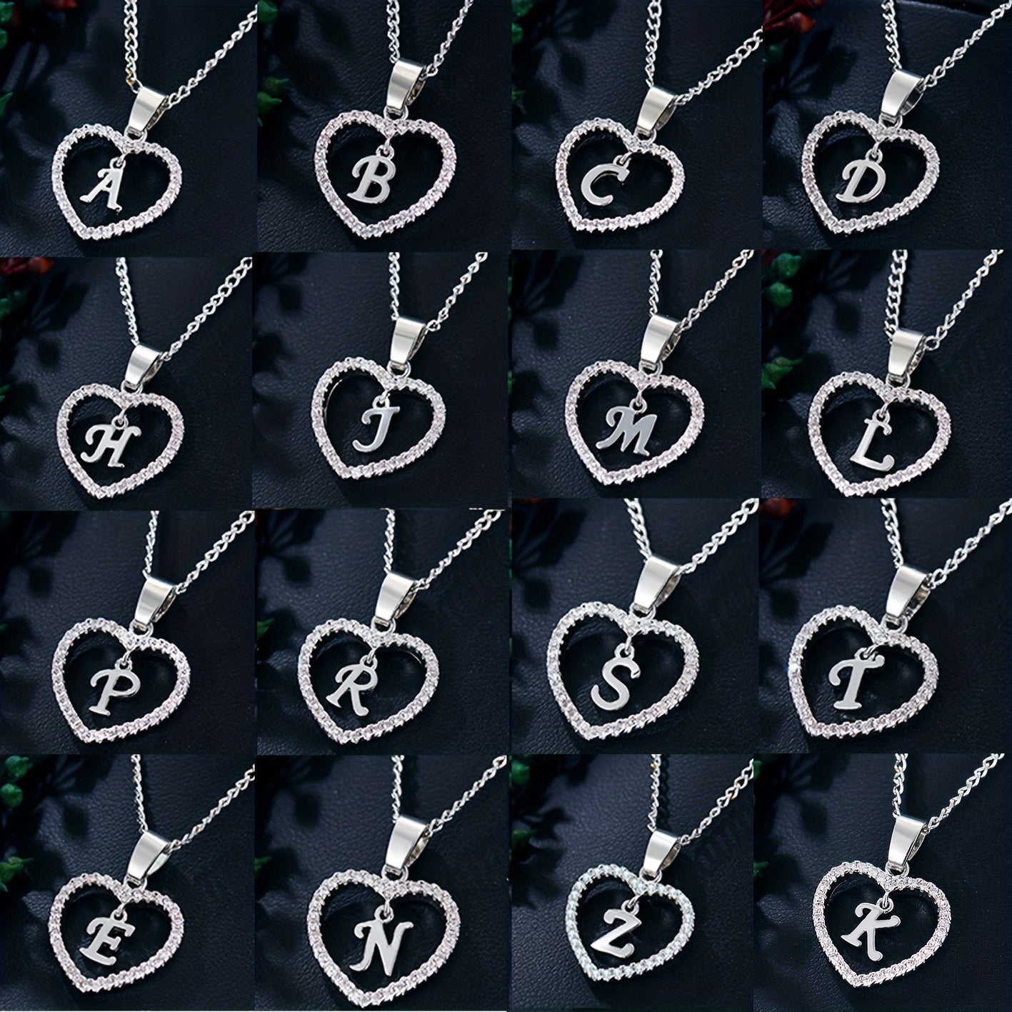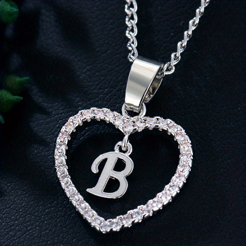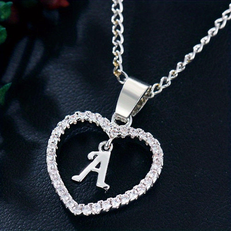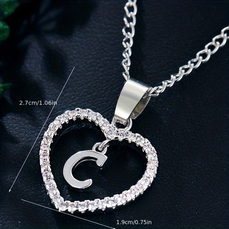 This beautiful heart-shaped pendant necklace features a silvery initial letter design adorned with sparkling zircon. Perfect for expressing your love and adding a touch of elegance to any outfit.