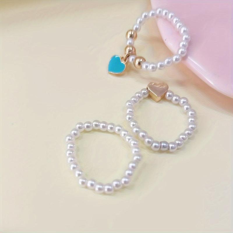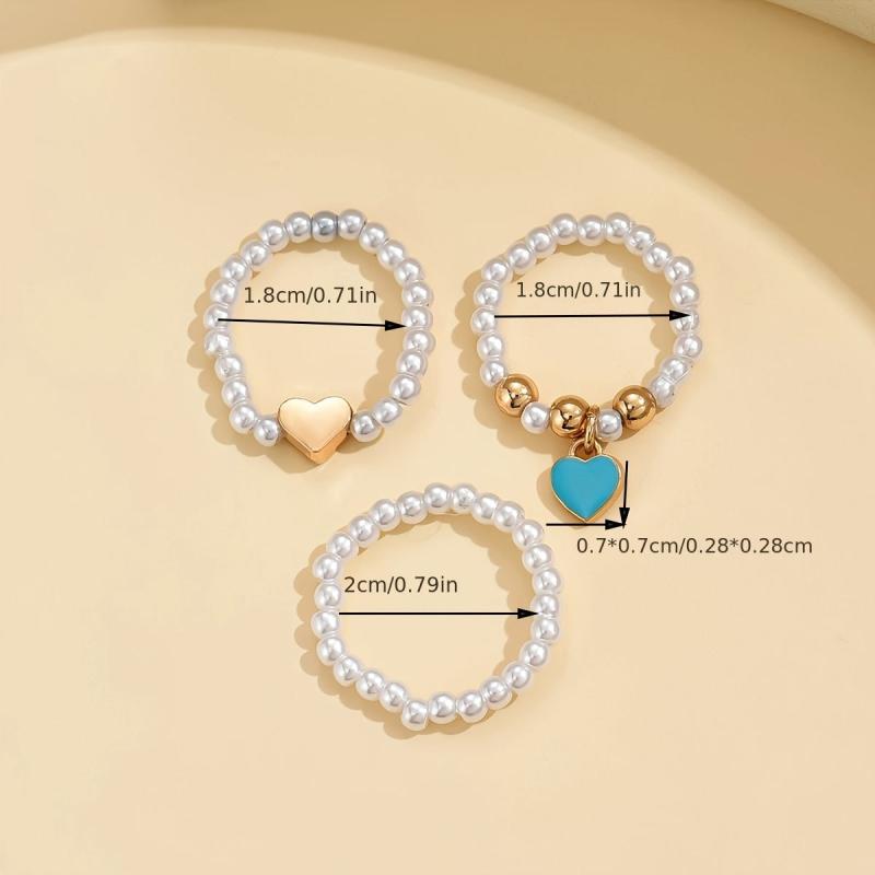 Add a touch of vintage and sexy style to your look with this heart ring set. Made of zinc alloy, it features an elastic band, irregular faux pearl beads, and a love heart drop design. Perfect accessory for daily wear or vacation.