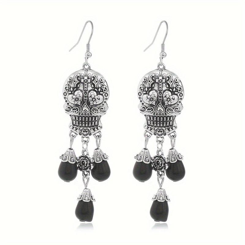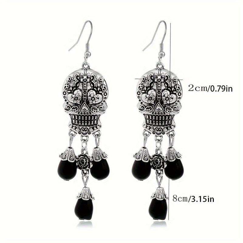 These earrings feature a creative hollow out design with turquoise mosaic detailing. Perfect for Halloween party or as a unique gift.