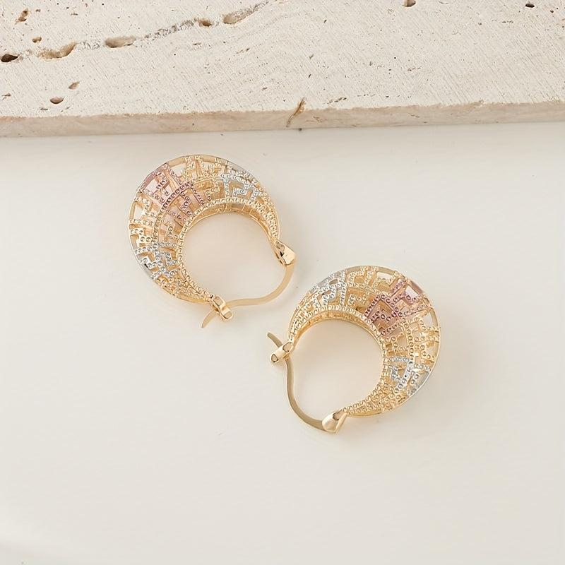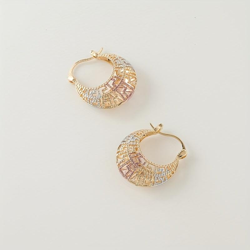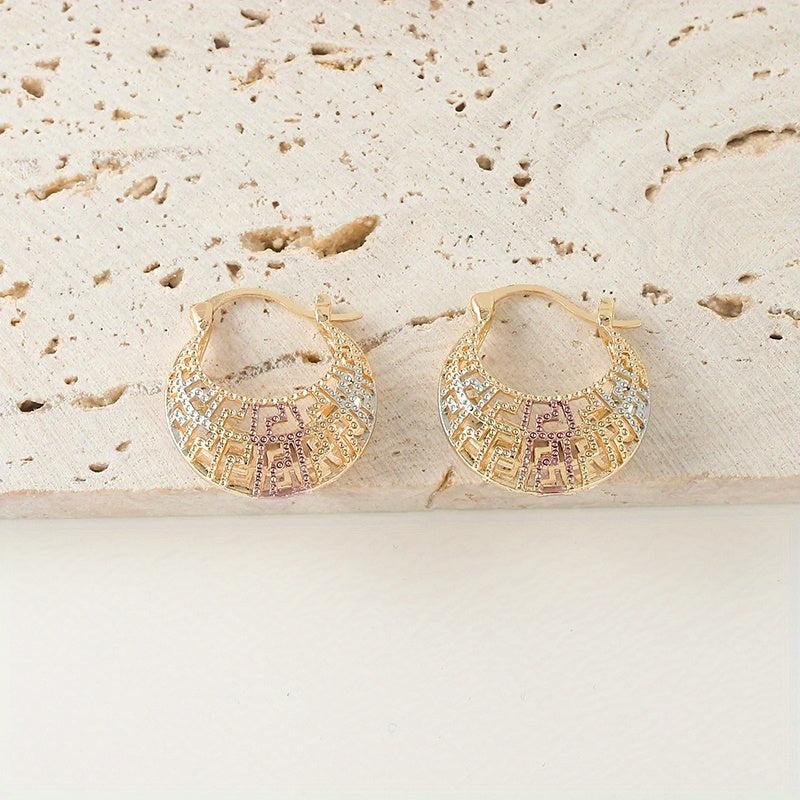 These vintage-inspired hoop earrings feature a golden tone with multicolor enamel accents. They are made with hypoallergenic copper posts, perfect for daily wear and special occasions.