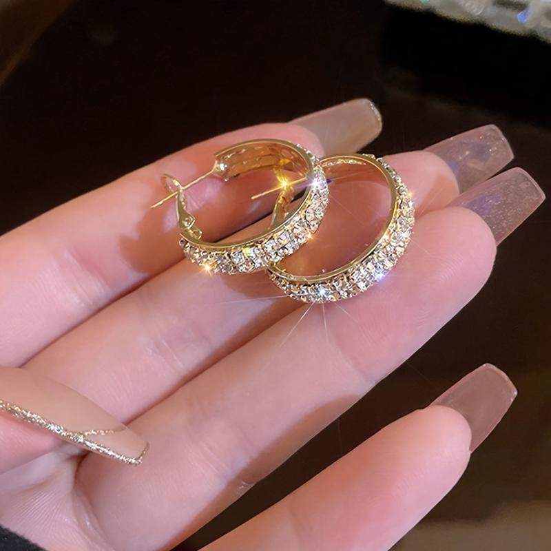 Elevate your style with these vintage-inspired hoop earrings featuring sparkling rhinestones. Made of high-quality zinc alloy, these earrings are perfect for everyday wear or special occasions.