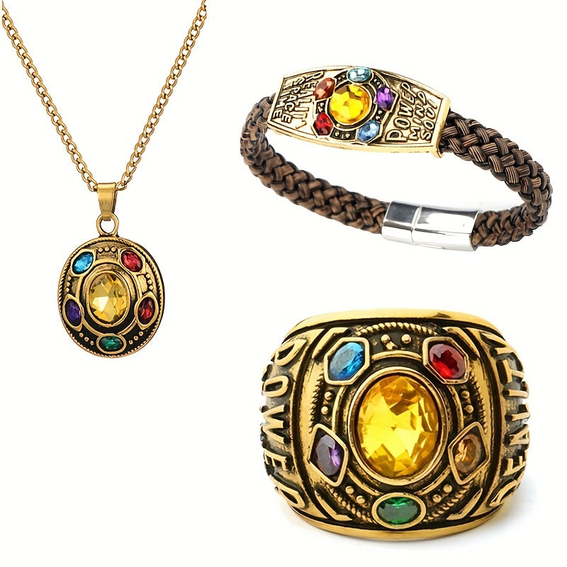 This universal couple jewelry set features infinity gloves composition bracelet, domineering ring, and necklace. Perfect for both men and women.