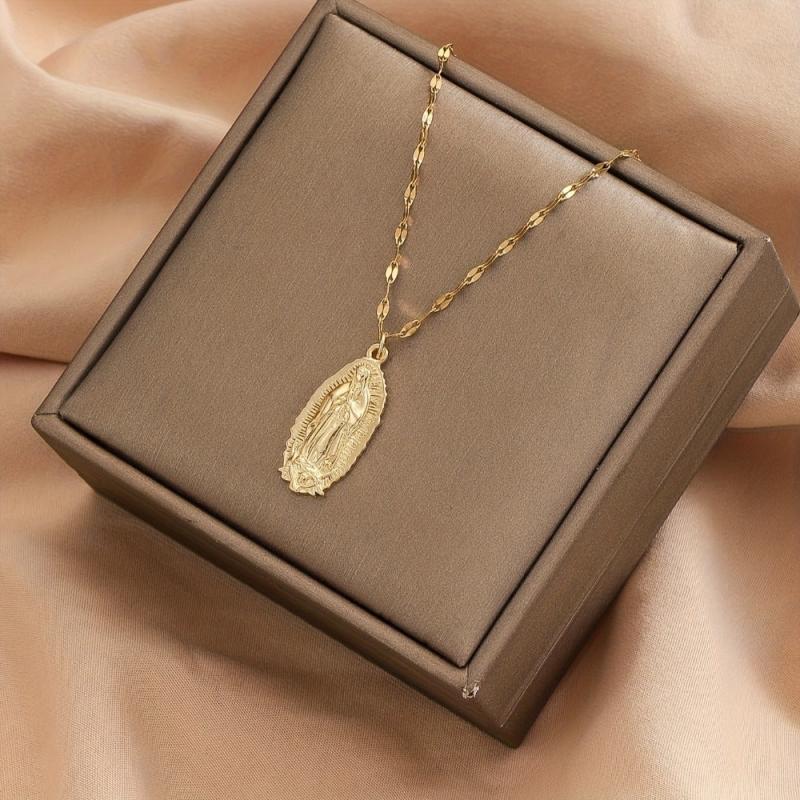 This golden tone pendant necklace features a versatile design inspired by vintage styles. It is perfect for men and women and makes a great gift for festivals and special occasions.