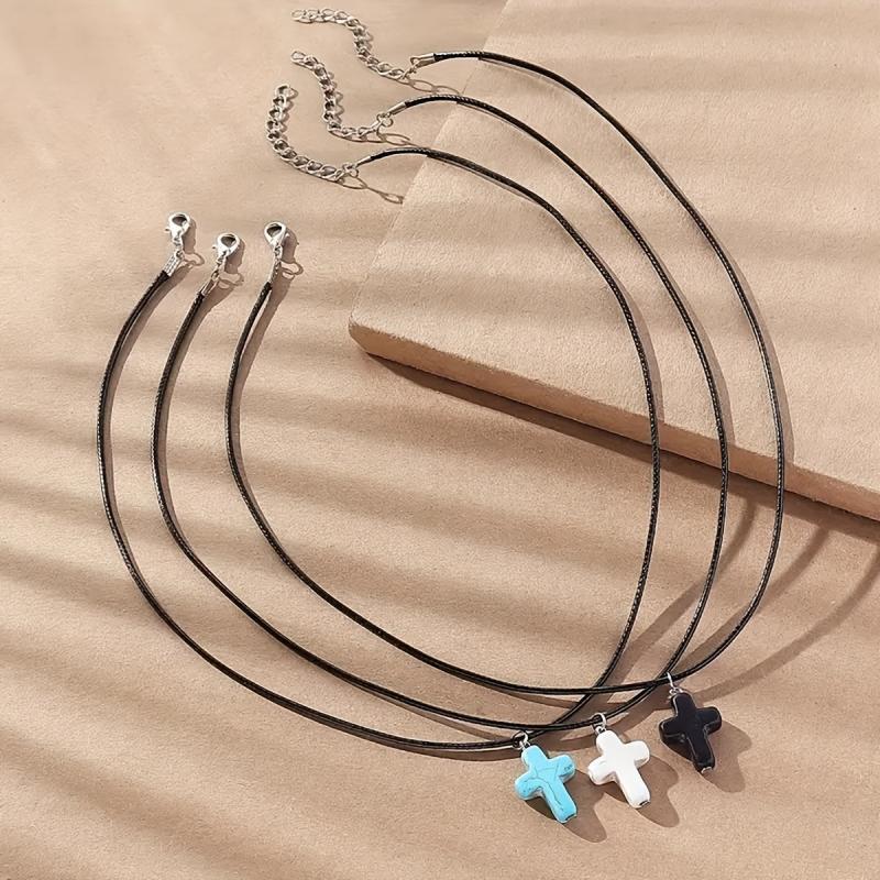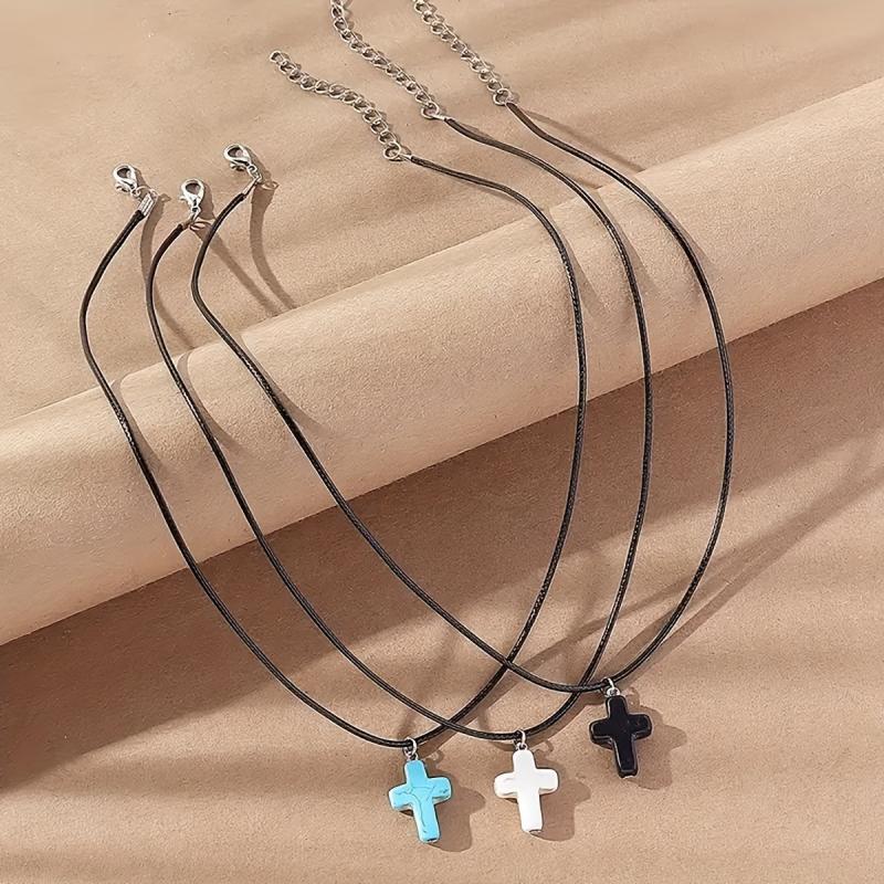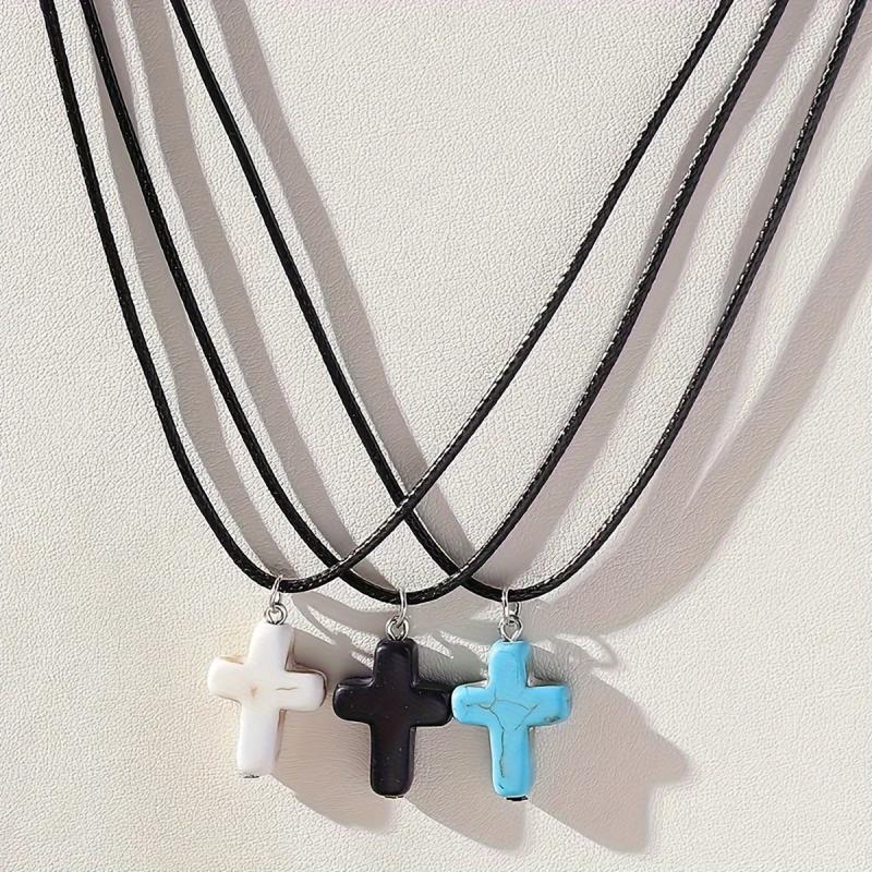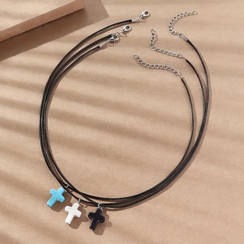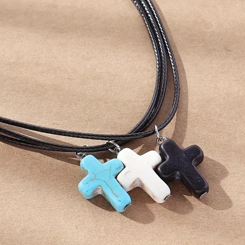 Add a touch of vintage charm with this minimalist Lapis Lazuli cross rope necklace set. Perfect for women's jewelry accessories.