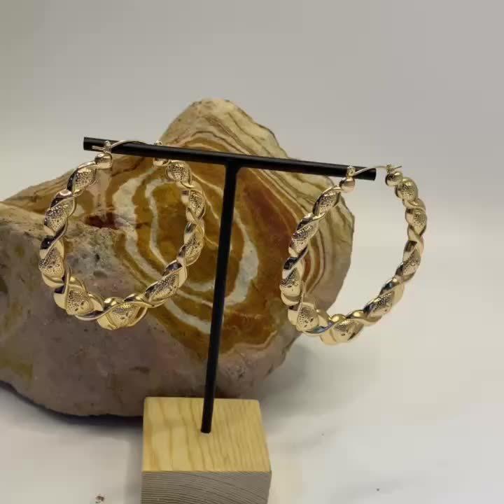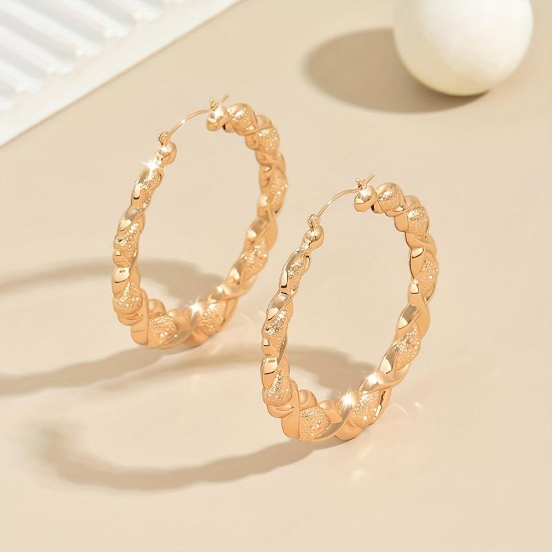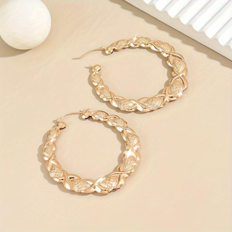 These vintage large hoop earrings feature an embossed carved pattern for a stylish look. Made of iron material with iron ear needle, these earrings are durable and elegant.