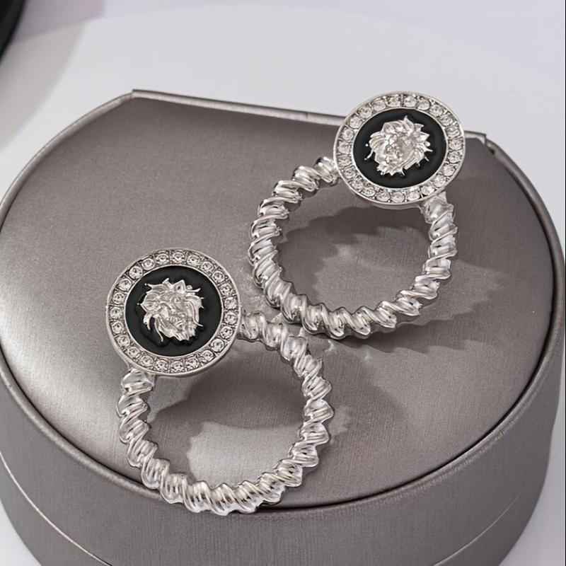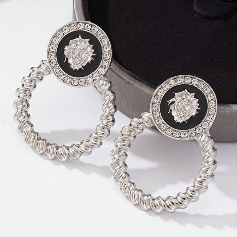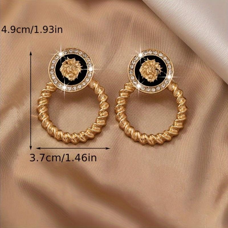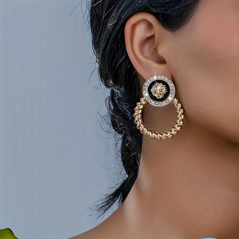 These unique earrings are inspired by European and American French court style. The design features lion head twisted circle accents for an exaggerated and elegant look.