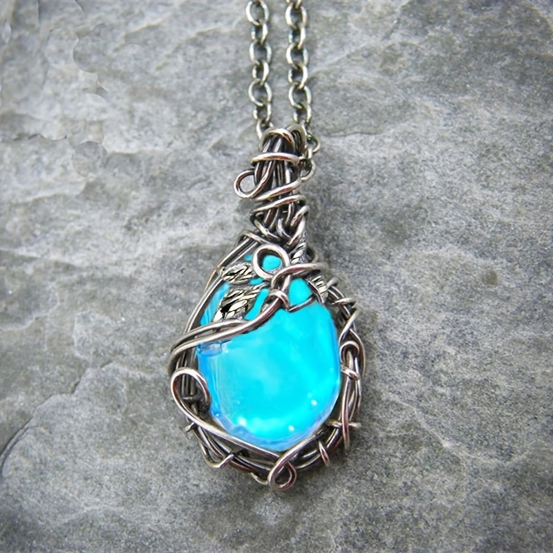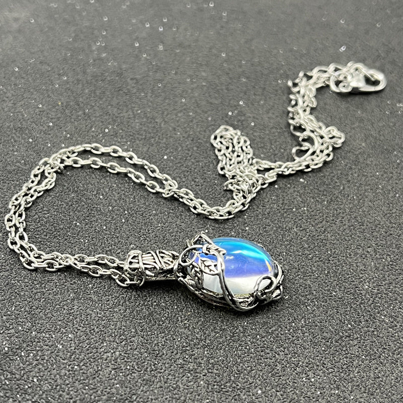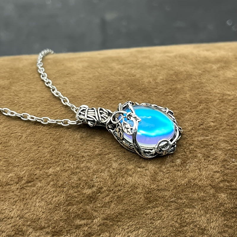 This vintage pendant necklace features a moonstone wrapped in a silver-tone setting, perfect for men's fashion.