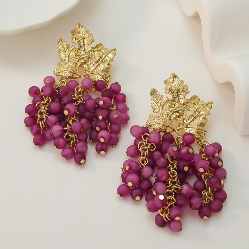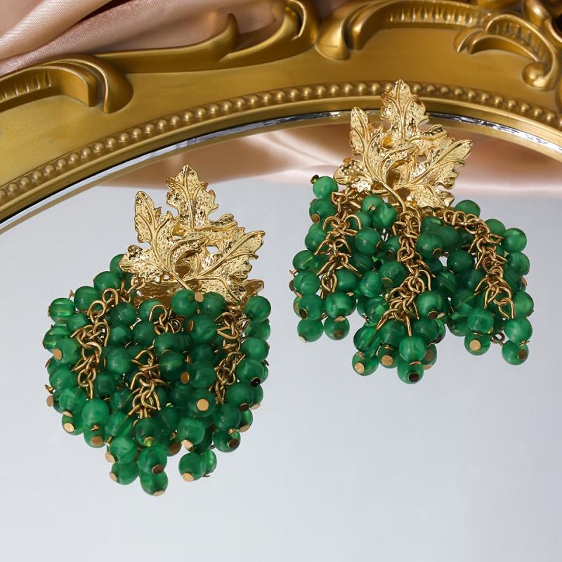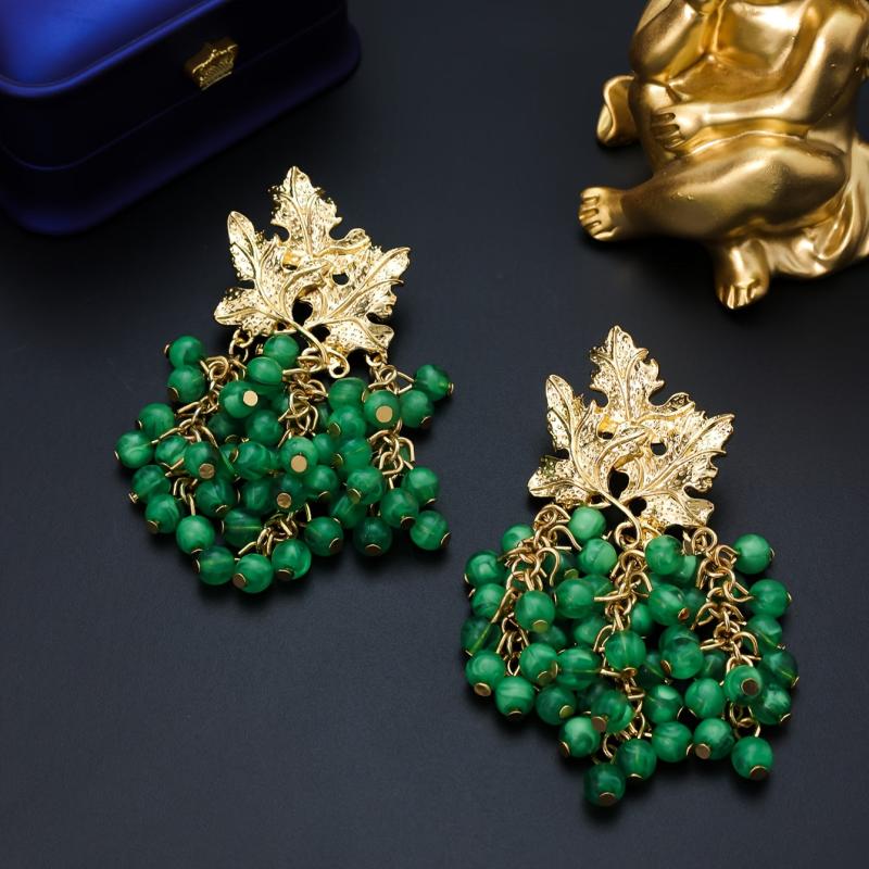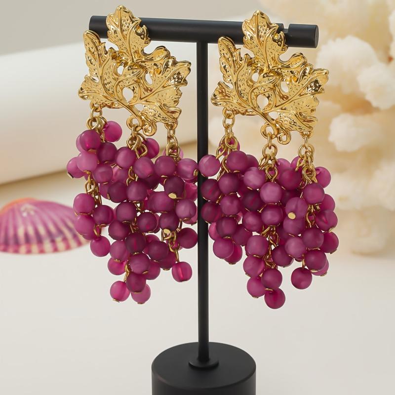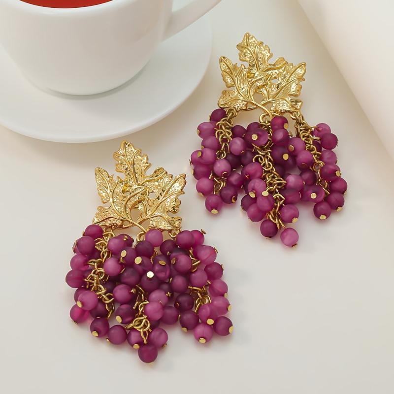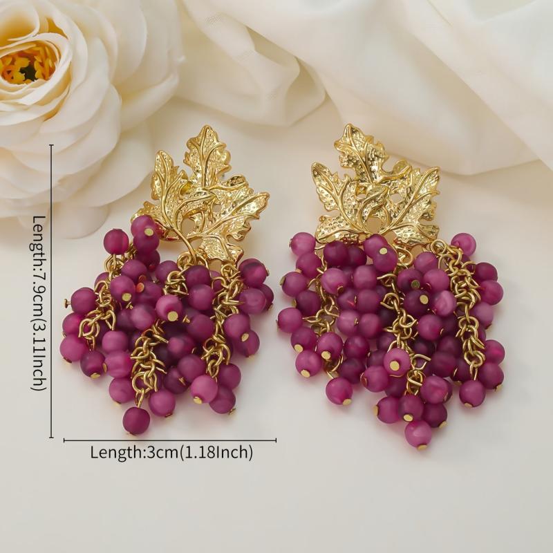 These European and American vintage earrings feature metal leaf grape design with long beaded accents. Perfect to add a unique touch to your outfit.
