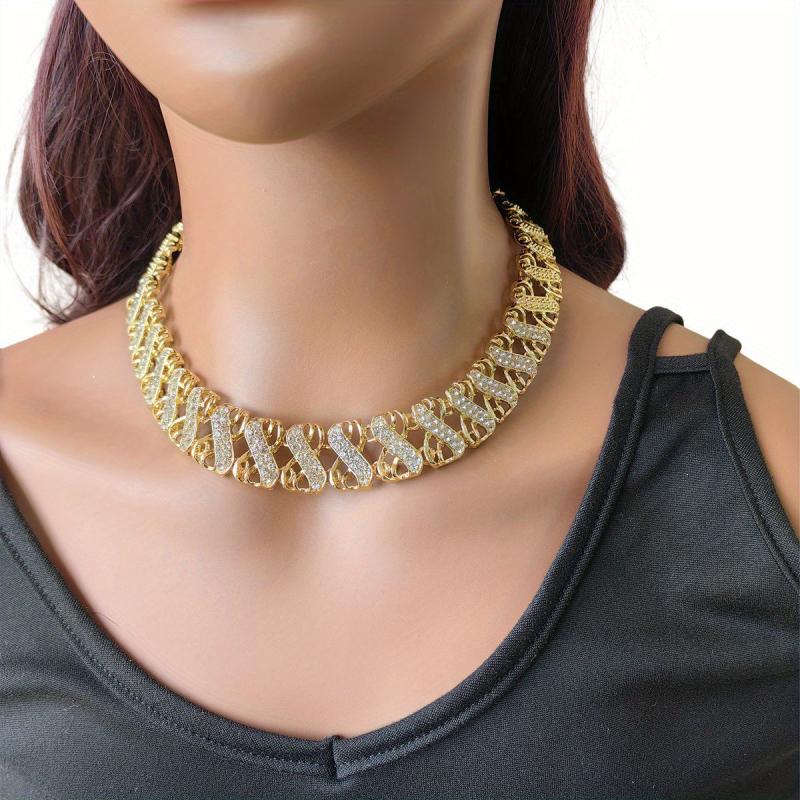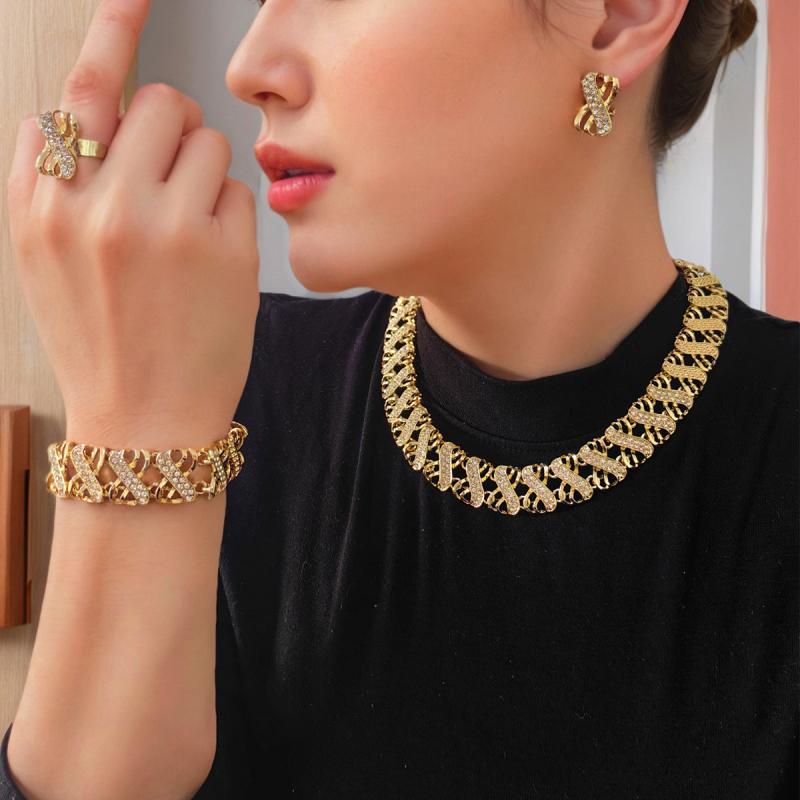 This stunning jewelry set includes a necklace, earrings, bracelet, and ring in a vintage and urban style. Adorned with sparkling rhinestones, this set is perfect for daily wear.