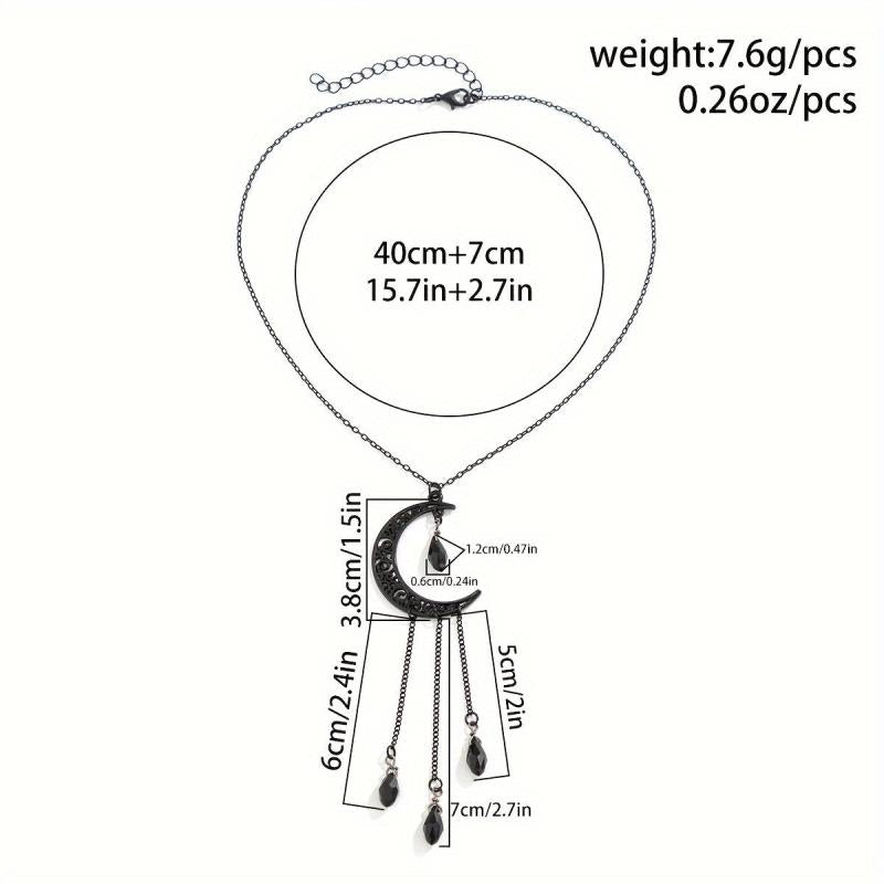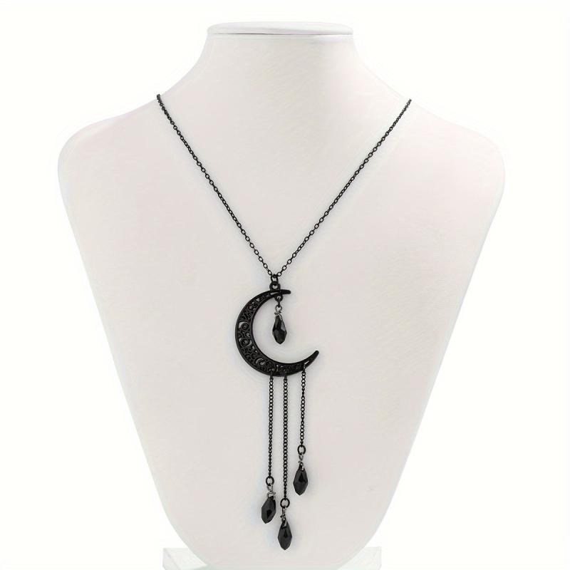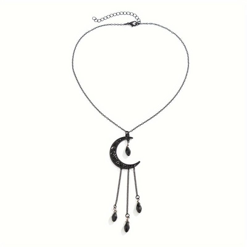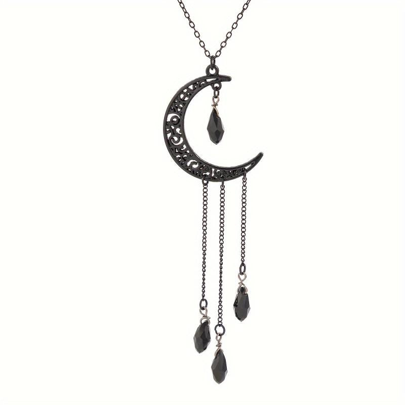 Stunning vintage style crescent moon pendant with crystal drops on a copper long tassel chain. Perfect accessory for parties, vacations, and all seasons. Ideal gift for anyone!