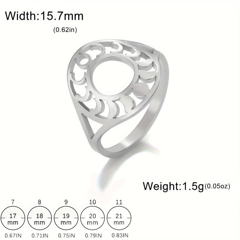 Stylish vintage moon phase ring for men featuring stars and the moon, this stainless steel wedding band makes a perfect gift. Unisex design as a lucky charm.