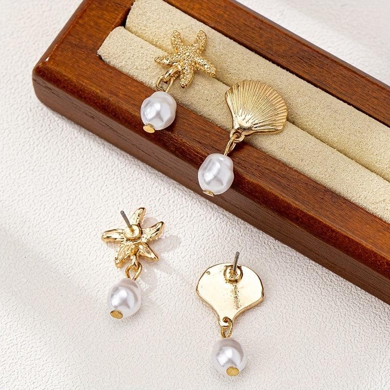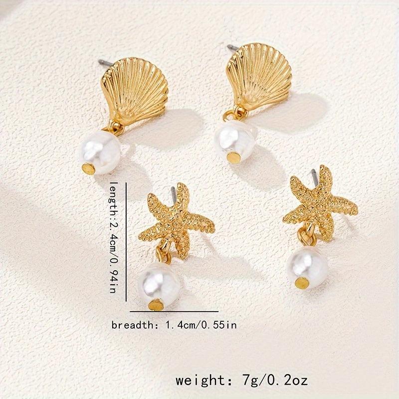 These vintage-inspired drop and dangle earring sets are perfect for ocean lovers. Featuring starfish and shell charms with faux pearl accents, they are made with stainless steel posts and no plating for a durable and artistic jewel.