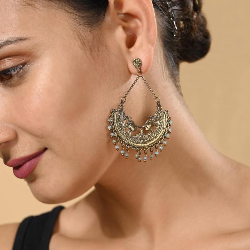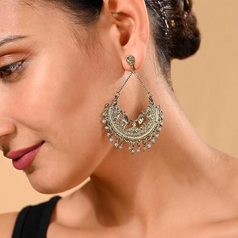 Elegant vintage peacock chandbalis earrings that resist tarnishing, making them perfect for all occasions.