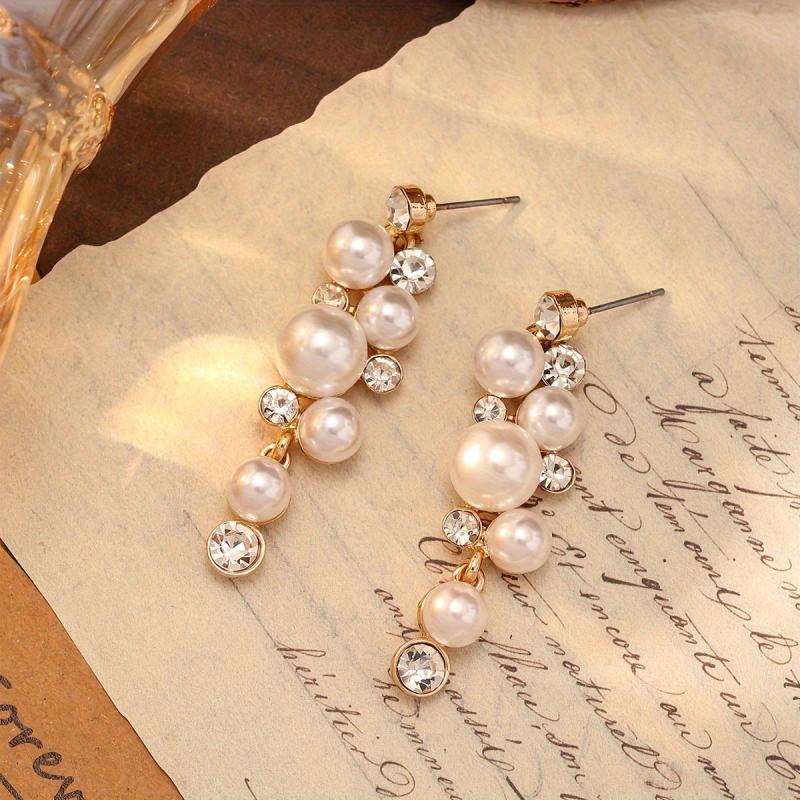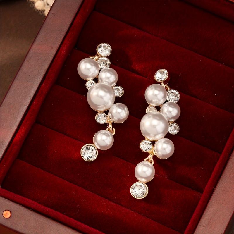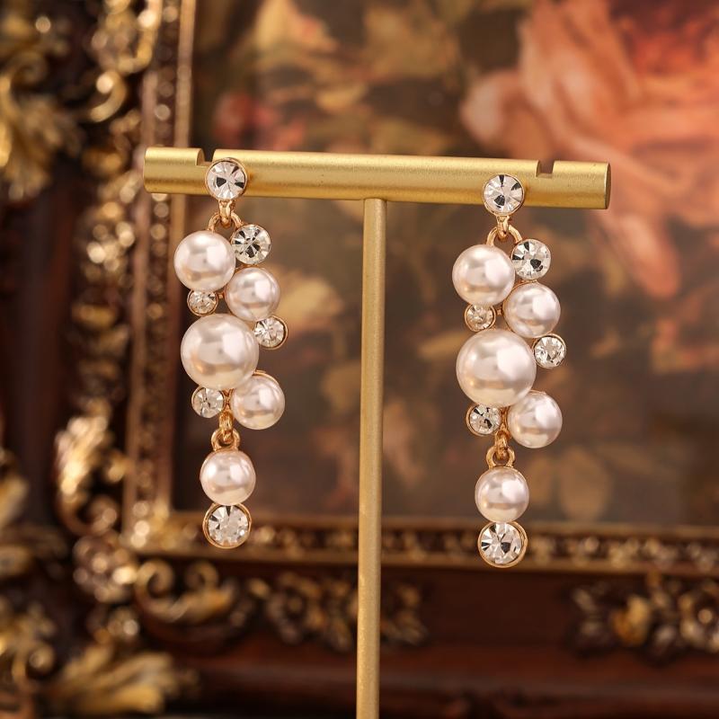 Enhance your style with these elegant vintage pearl drop earrings. They are made of hypoallergenic stainless steel and feature a 14K golden plating.
