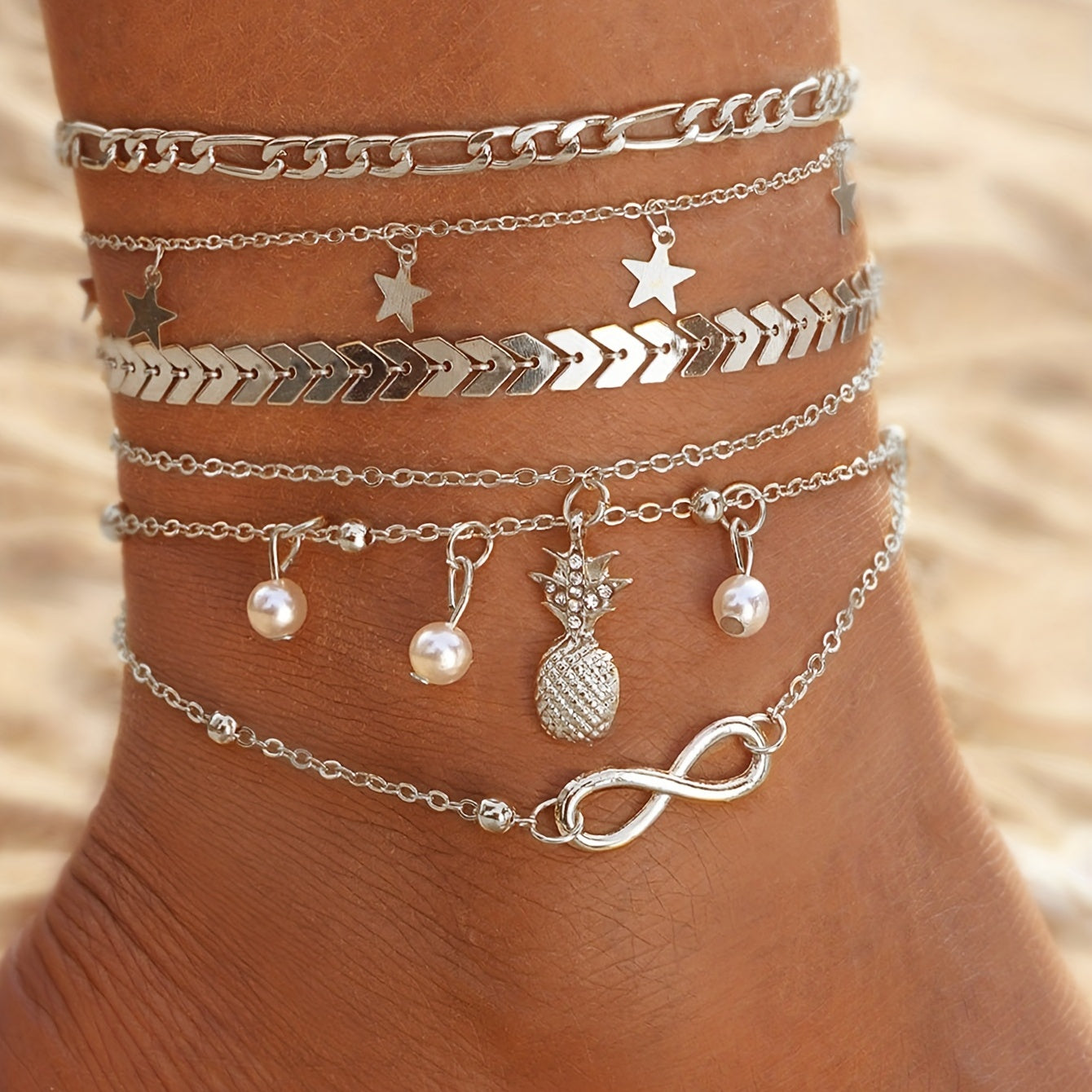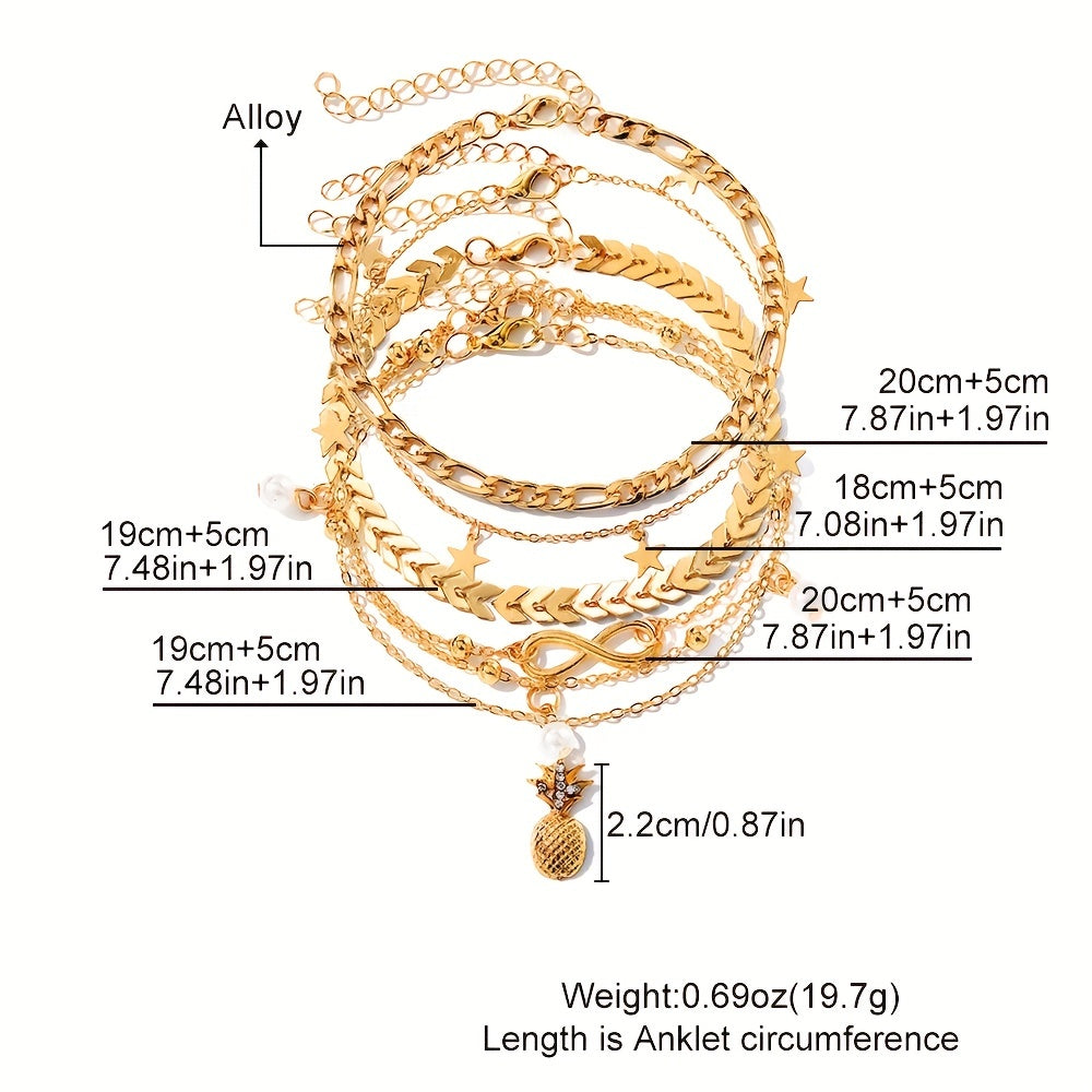 Add a touch of retro charm to your anklet collection with this Vintage Golden Pineapple Faux Pearl Charm Anklet Set. Perfect for summer vibes and beachy looks.