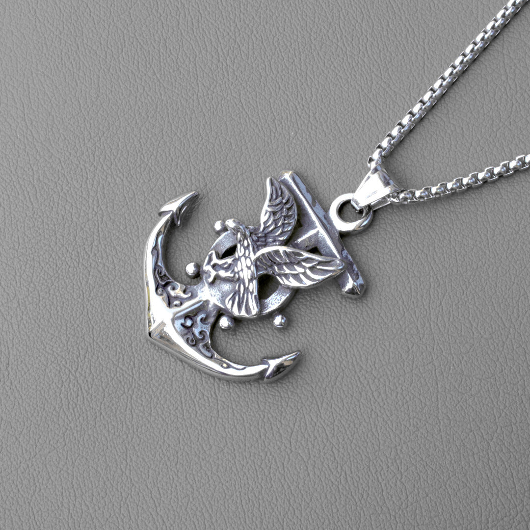 This necklace features a vintage pirate hook with a flying eagle design, perfect for a punk or hip hop style. Made of high-quality stainless steel, it is durable and stylish, making it a great addition to your jewelry collection.