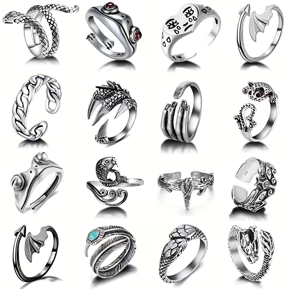 This set of open adjustable rings features a snake and a crying frog in vintage punk style. Perfect for adding a unique touch to your outfit.