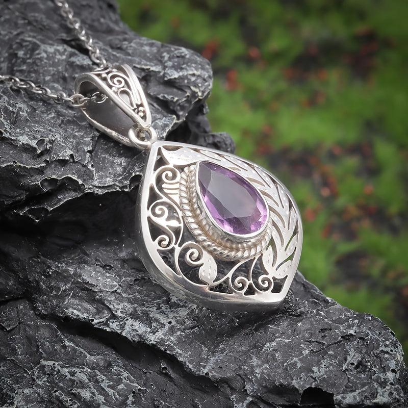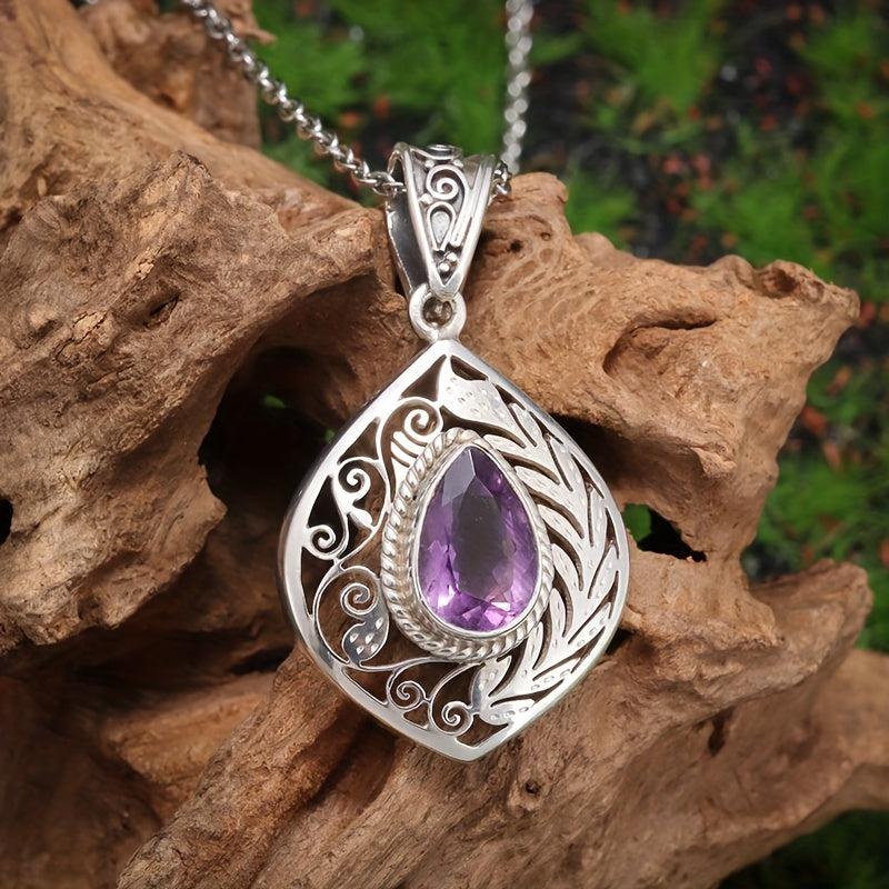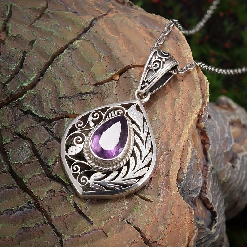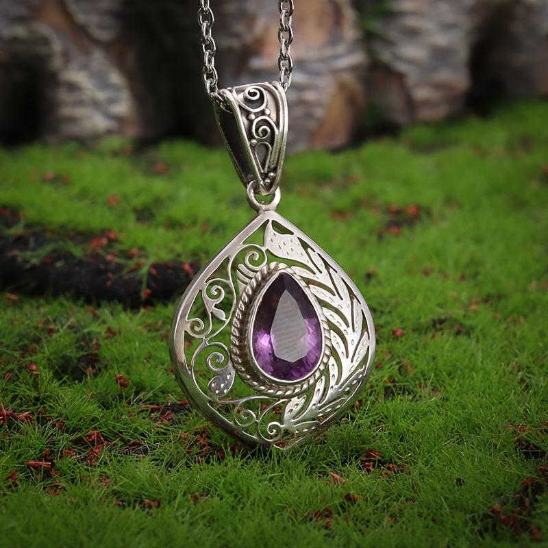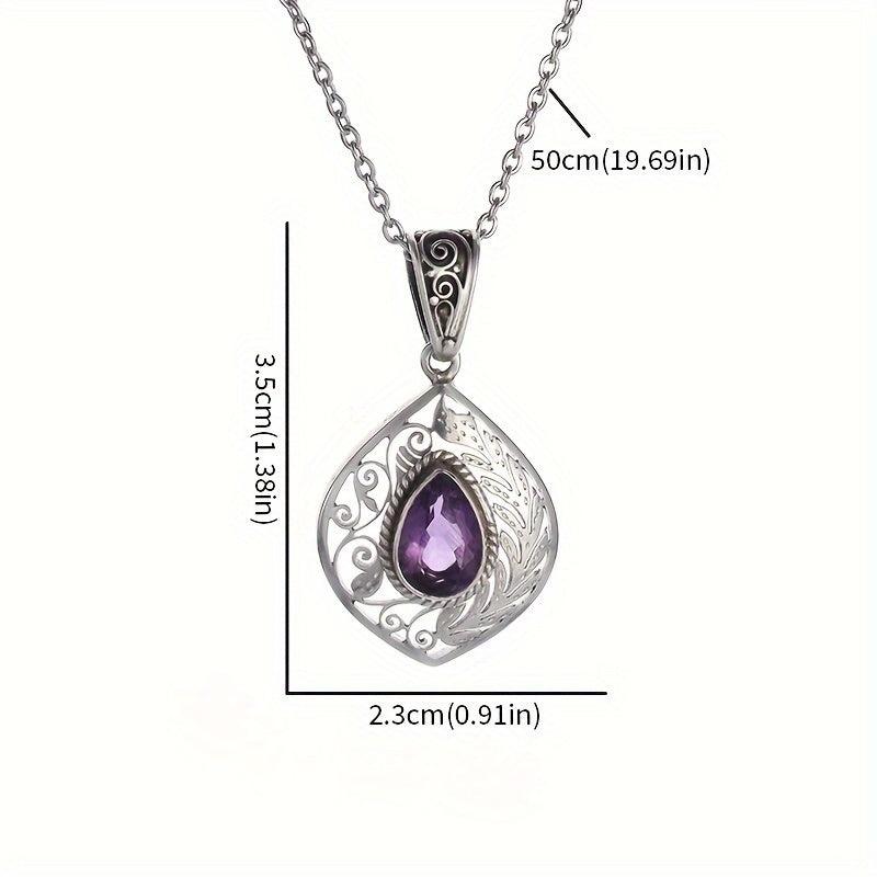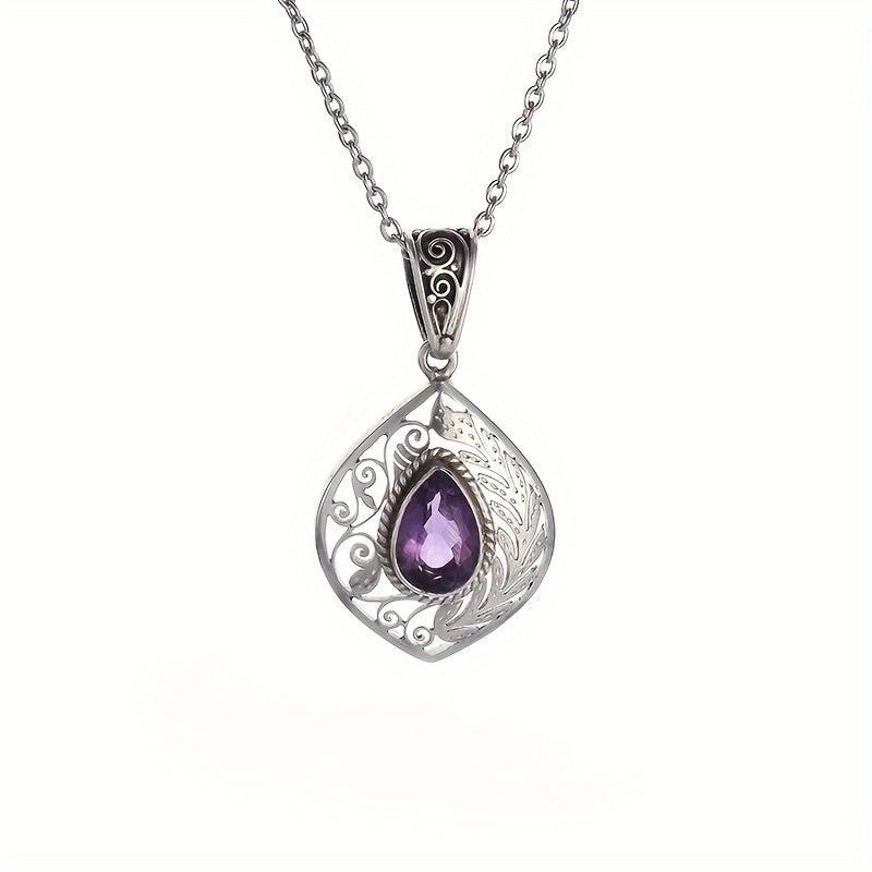 Elegant vintage purple zirconia pendant necklace suitable for banquets, dances, and parties. Perfect for men and women as a Valentine's gift or accessory.
