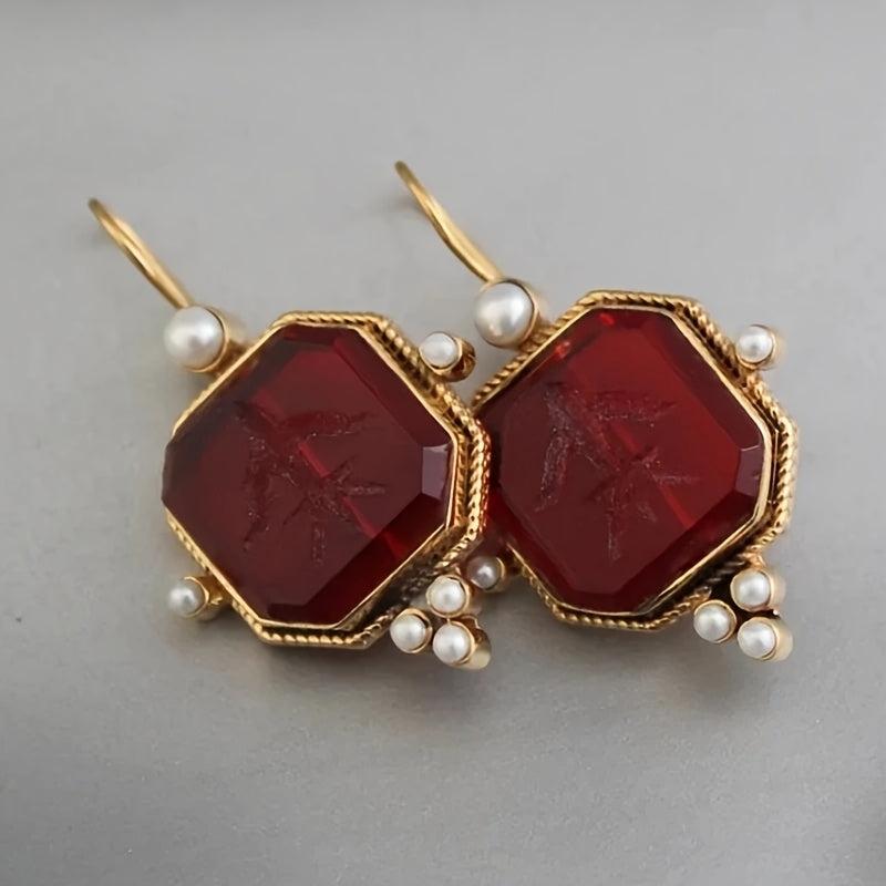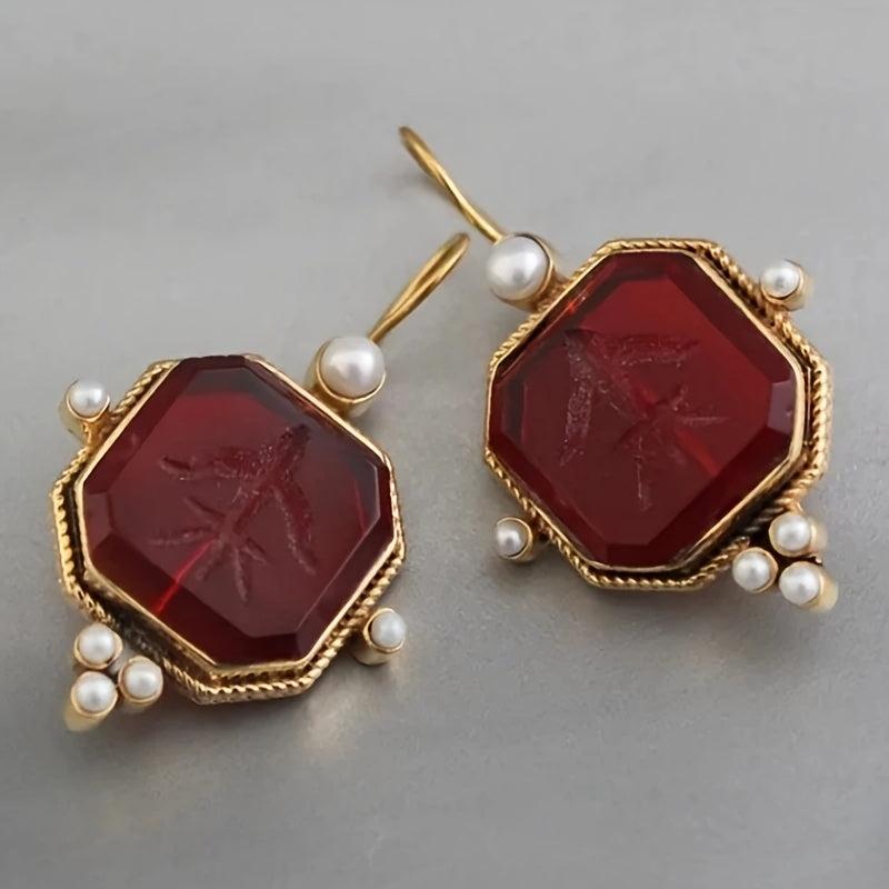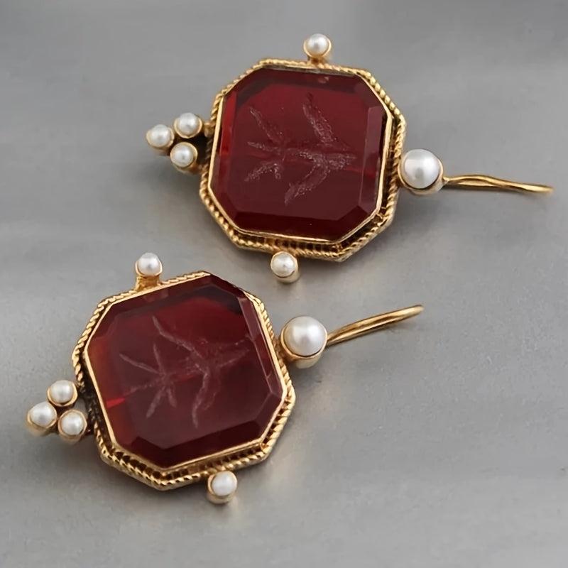 These red earrings with golden accents are perfect for daily wear or as a bridesmaid gift. They have a vintage bohemian style that is ideal for Christmas.