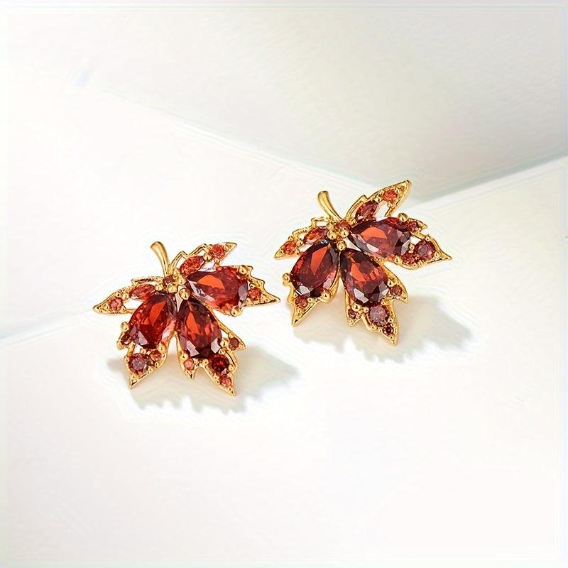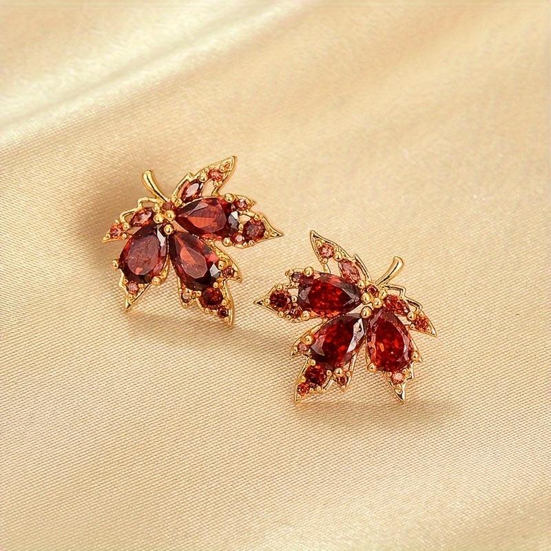 These artistic style red maple leaf stud earrings are perfect for adding a touch of nature-inspired charm to your outfit. Made of zinc alloy with stainless steel post, they are durable and easy to wear.