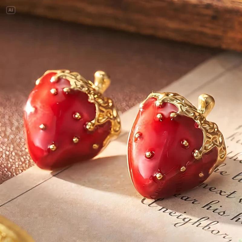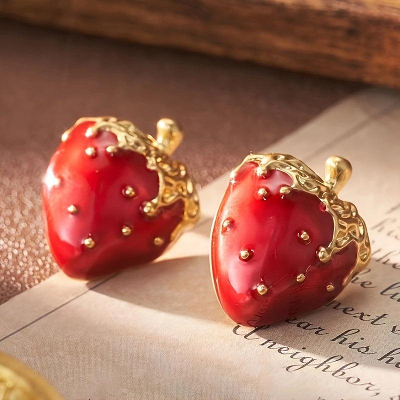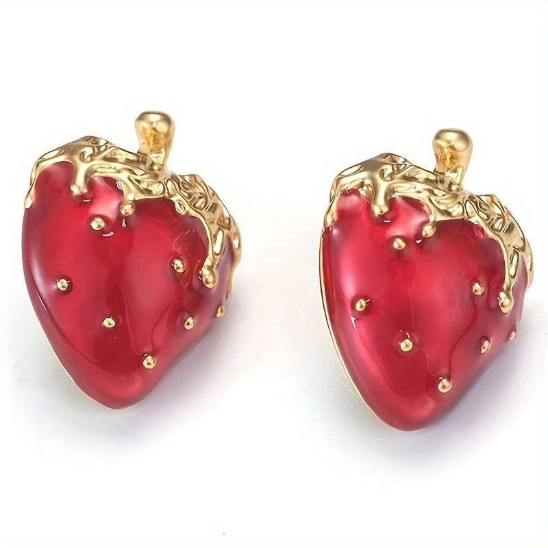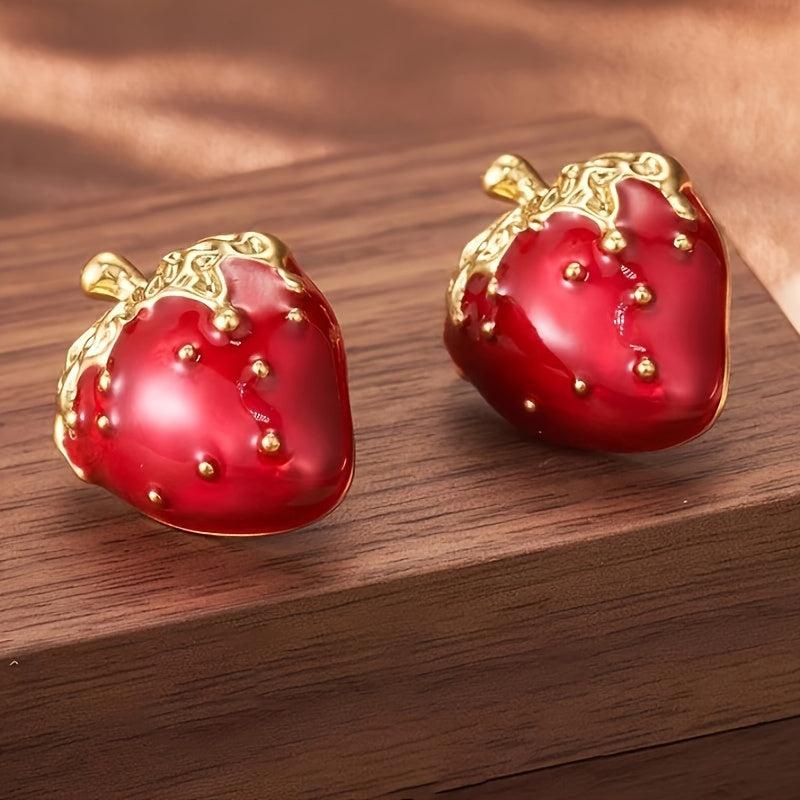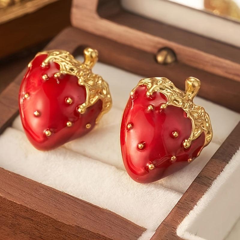 Elevate your style with these vintage red strawberry enamel earrings. Made from zinc alloy with 316L stainless steel post, these drop earrings are versatile for daily wear in all seasons.