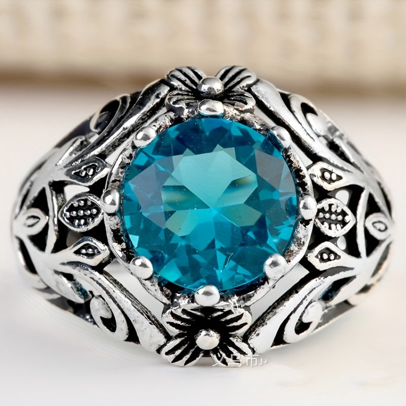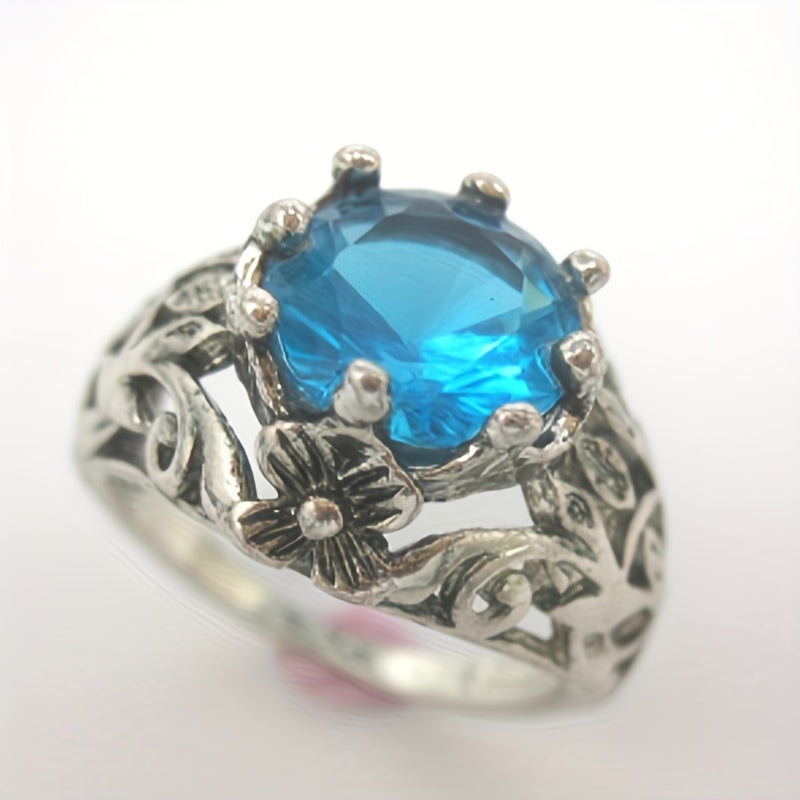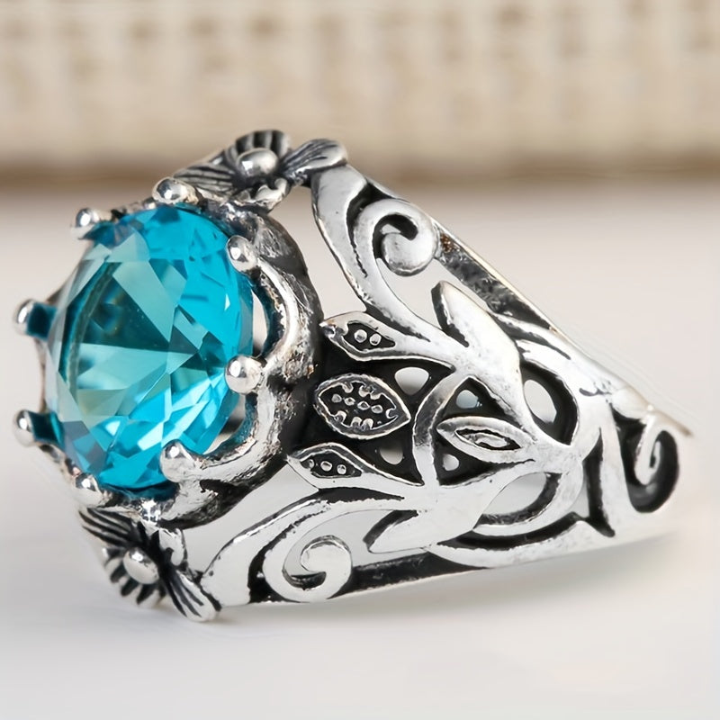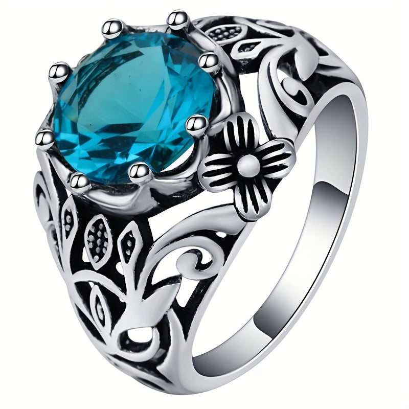 This vintage ring features intricate zircon inlay and a beautifully carved flower branch design, symbolizing eternity and elegance. Makes a perfect gift for a special woman in your life.